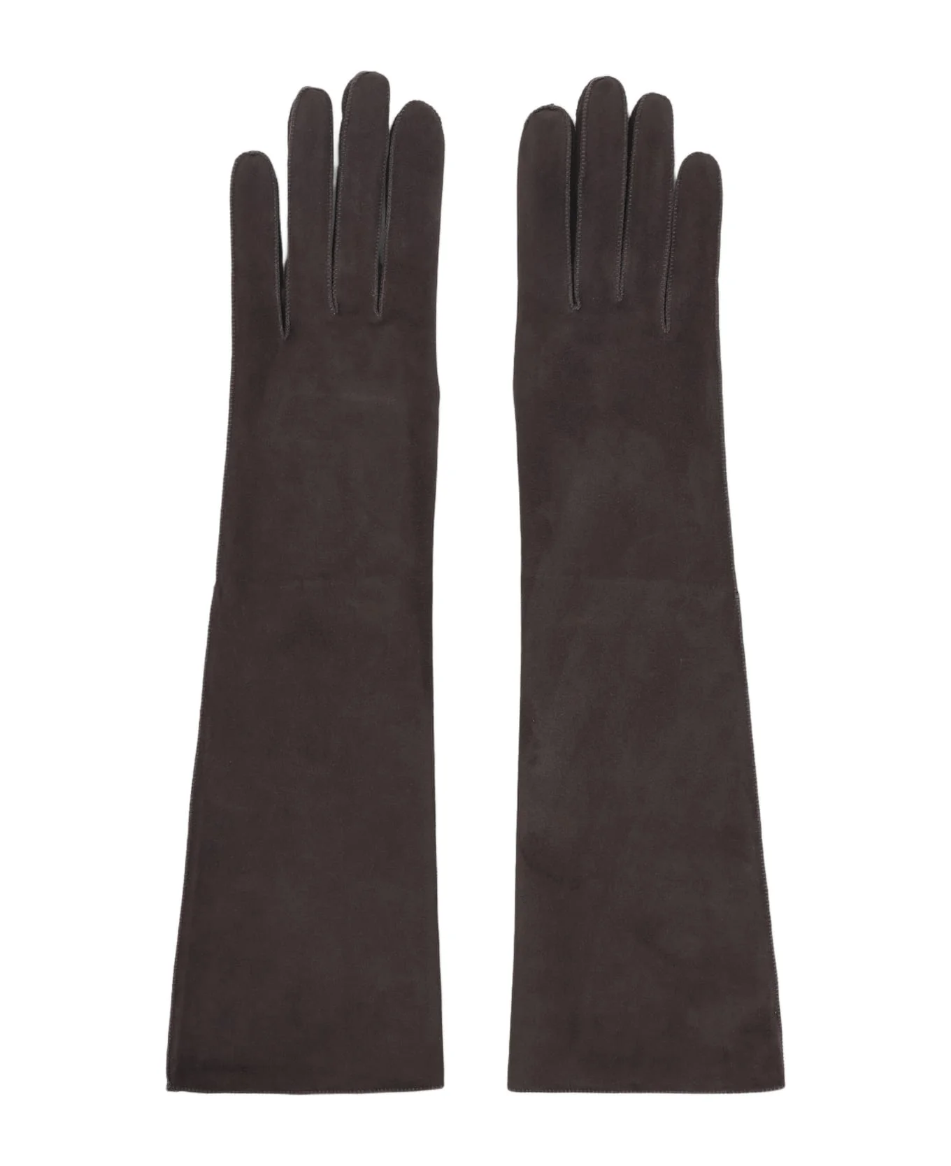 Lanvin Long Slim Brown Goatskin Gloves. Long gloves crafted from high-quality dark brown suede leather, with a silk lining and slim fit. Made in: France Color: Mocha Model number: AWGLAGL1CDSIH25658
