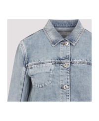 Lanvin Short Cotton Jacket. Crafted from bleached cotton denim, pointed collar, front button fastening, patch pocket on the breast, long sleeves, buttoned cuffs, leather label at the back hem, cropped length, unlined. Made in: Italy Color: Light Blue Model number: RWJA0301D087P2522