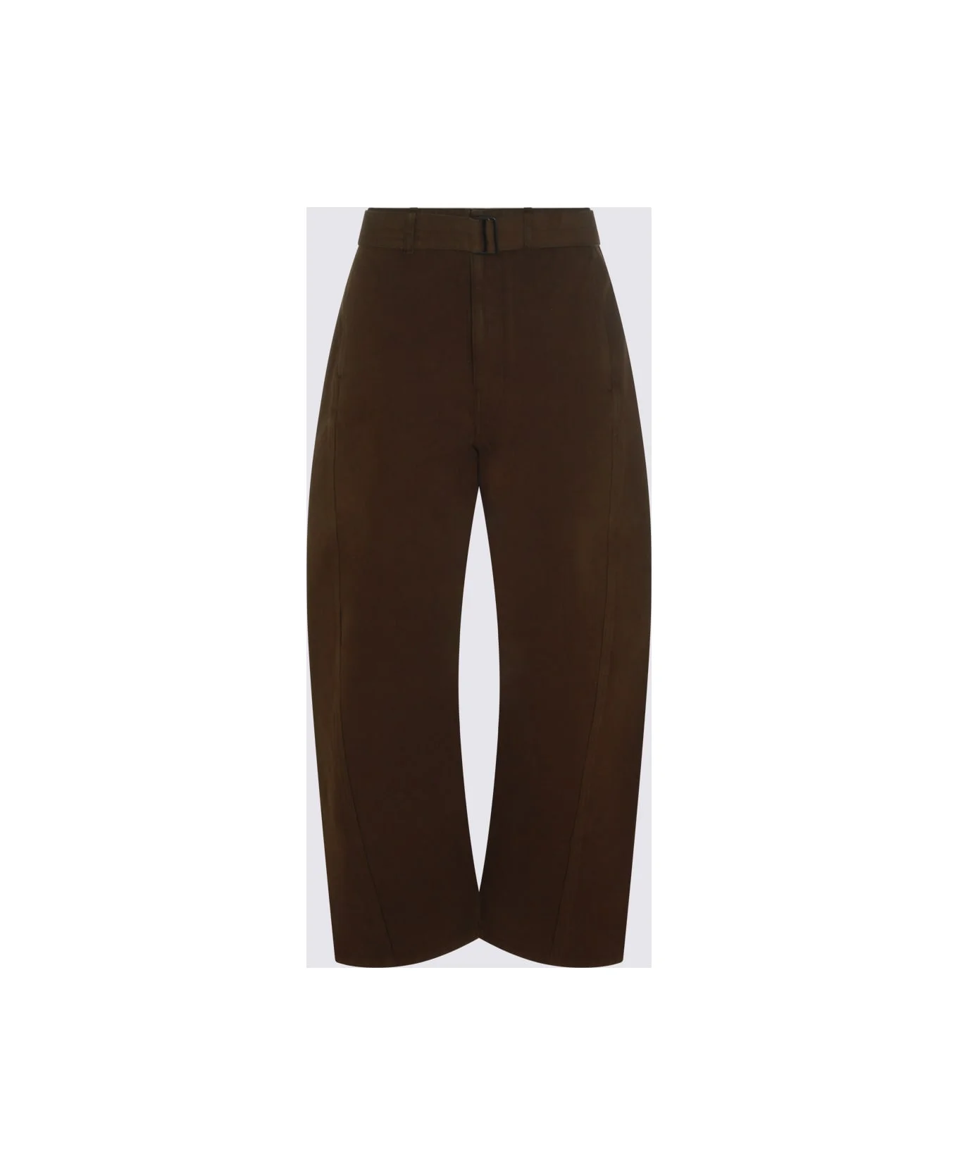 Dark Brown leather pants from Lemaire featuring wideleg, high waist, classic five pockets and zip closure fastening. Composition: _, 100% Le Made in: Morocco Color: Brown Model number: PA326LD1068BR423
