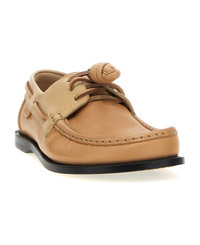 'Campo' calf leather boat shoe featuring the iconic rounded toe LOEWE and hand-stitched construction, padded leather insole, lace-up closure, injected rubber island sole. Composition: 100% calfskin leather (Bos Taurus) Made in: Italy Color: Beige Size and fit: - EU WOMEN Model number: LLSCS08X084838