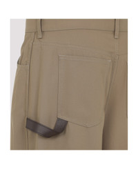 Loewe Carpenter Beige Cotton Pants. Beige cotton twill, front button and fly-zip fastening, mid-waist, 5-pockets design, brown leather hammer loop detail, curved leg, relaxed fit. Made in: Italy Color: Beige Model number: H526Y04WHB2140