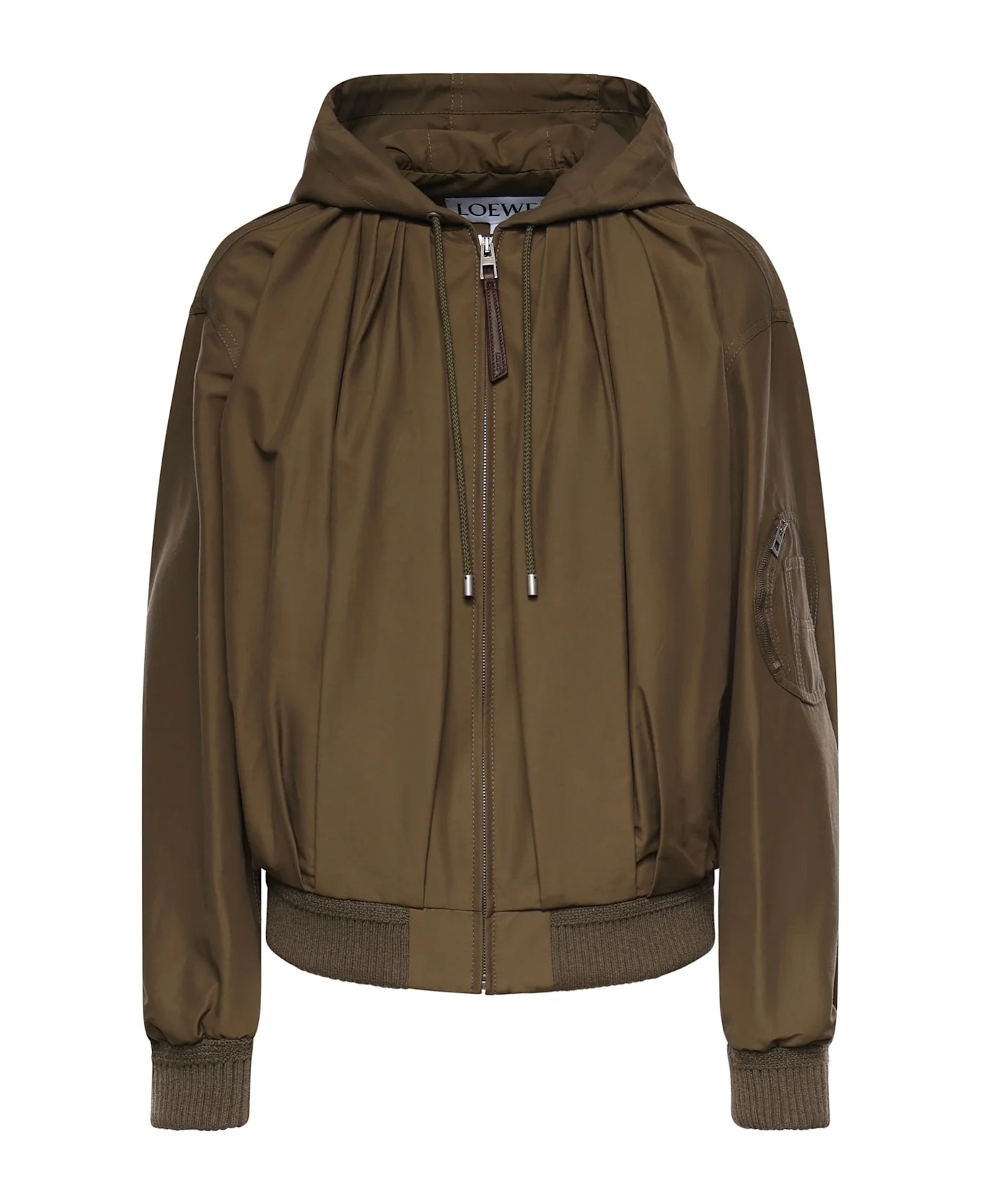 - Made of a technical cotton blend - Front zip closure - Drawstring hood - Ribbed hem and cuffs - Regular fit - Size shown is 36 - Made in Italy - Color: Khaki Green Color: Khaki green Model number: S359Y02XFA4160