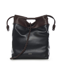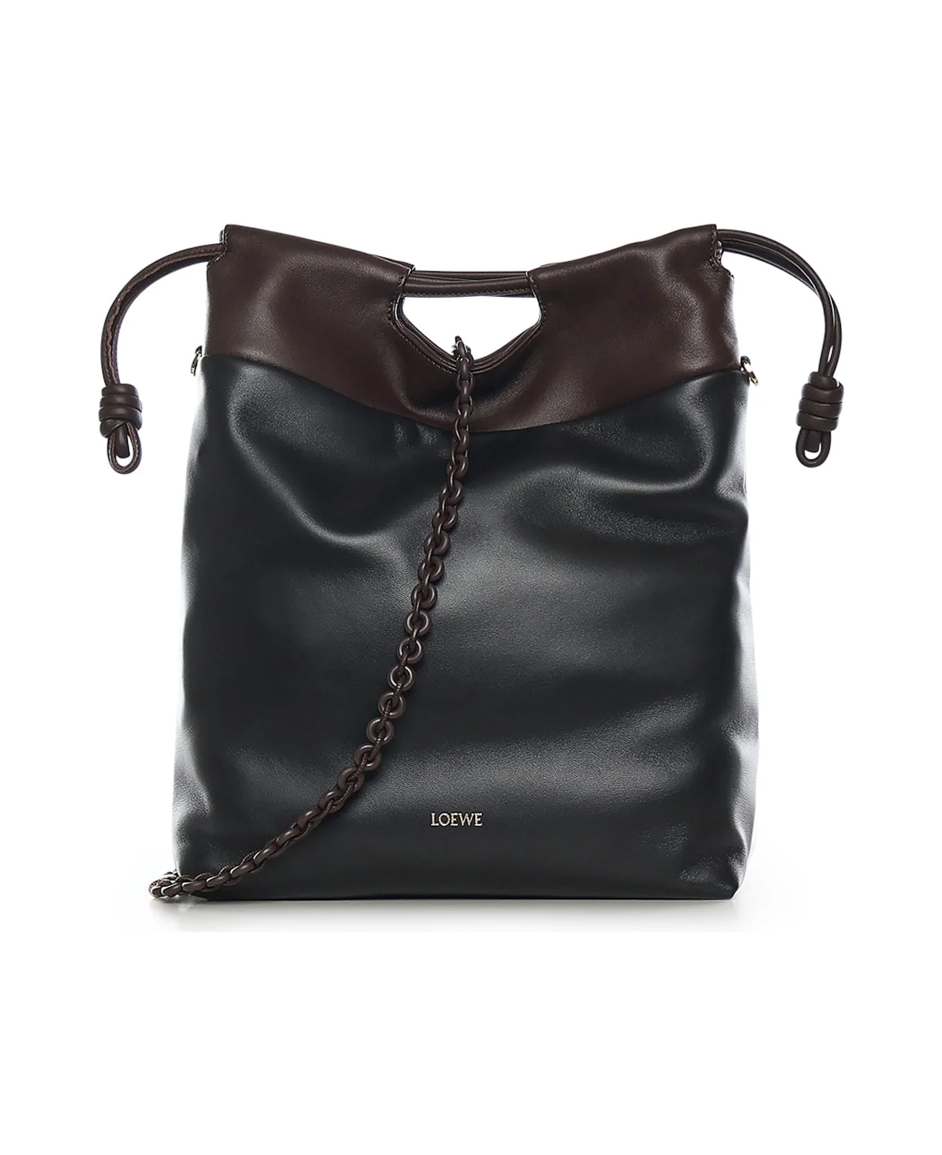 -Made of nappa lambskin -Magnetic closure -Top handles -Adjustable and removable shoulder strap -Removable donut chain -Embossed logo -Dimensions: 38 x 29 x 9 cm -Designer color: Black, Dark Brown Made in: Spain Color: BLACK/DARK BROWNIE Size and fit: - 38 x 29 x 9 cm Model number: A411FIOX0420