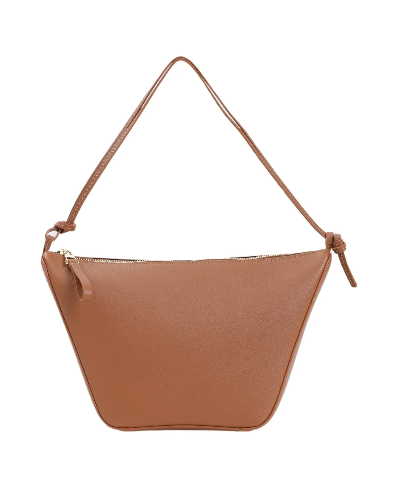 Loewe Tan Brown Calf Leather Hammock Hobo Mini Handbag. Pure tan brown calf leather mini handbag, top tonal shoulder strap, side knot details, top zipped fastening, one main compartment. Made in: Spain Color: Tan Size and fit: - W:28cm H:15cm D:9,5cm Model number: A538G13X012530
