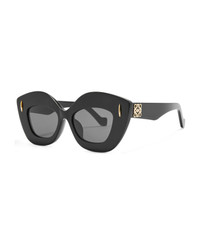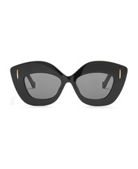 Loewe LW40127I - BLACK (LW40127I4801A) are cat-eye sunglasses made in Italy. They feature black acetate frame, acetate temples, Loewe emblem on temples, golden front pins, and grey lens with 100% UV protection. Made in Italy - Color: black - Material: acetate - Lens: grey - Shape: cat-eye - Size: eye 49mm / bridge 17mm / temple 145mm Made in: Italy Color: Black Model number: LW40127I4801A