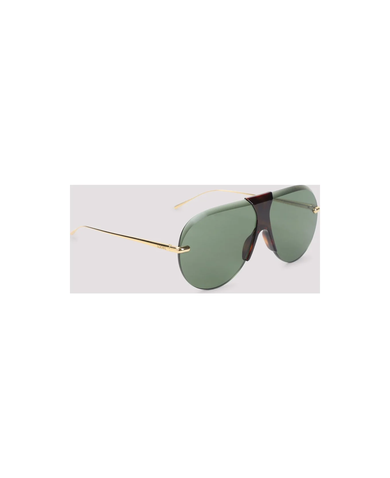 Loewe Eyewear Safari Brown Acetate Sunglasses. Aviator-shaped sunglasses, featuring a frameless construction, green lenses, a Havana brown acetate bridge and nose pads, and gold-tone fine metal temples. Made in: Italy Color: N Havana Model number: LW40192U30N