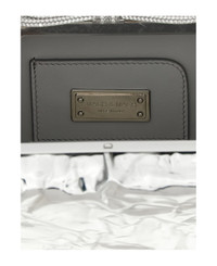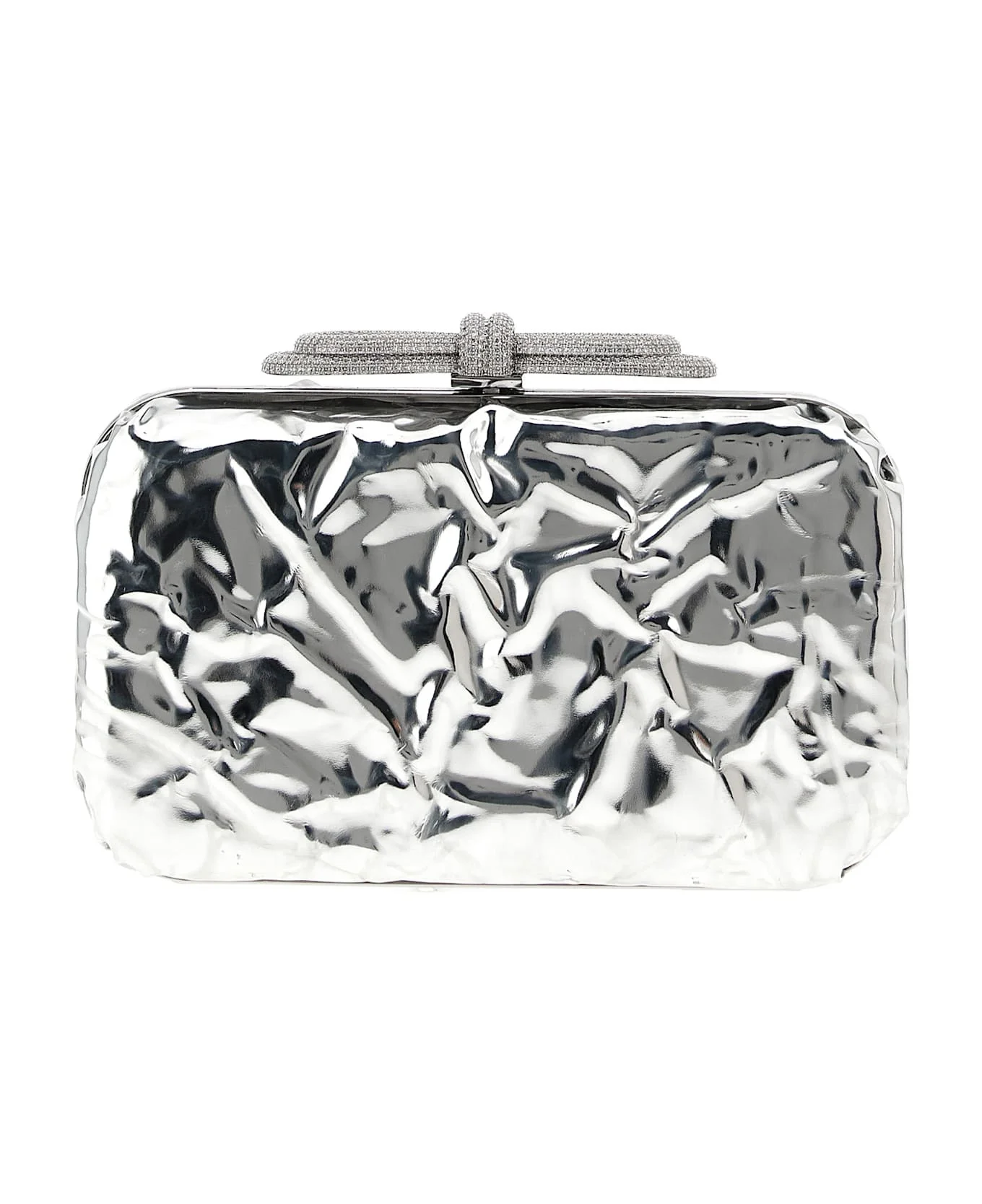 Clutch 'Double Bow Wrapped Mirror' in wrinkled-effect laminated leather, metal closure with jewel bow application, removable chain shoulder strap. Composition: 100% calfskin leather (Bos Taurus) Made in: Italy Color: Silver Size and fit: - W 20 x H 11 x D 5.5 cm Model number: PF25BG0002WRPSIL