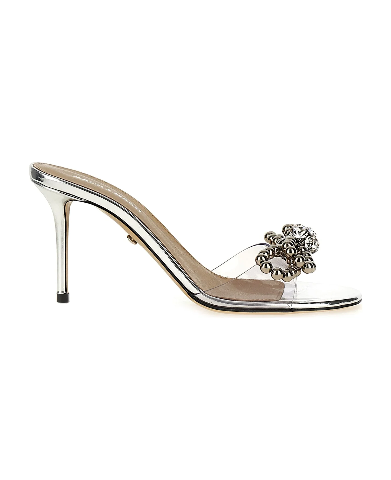 'Stud bow' sandals in transparent PVC with front jewel application, front opening, strapless, heel. Composition: 100% PVC Made in: Italy Color: Silver Size and fit: - EU WOMEN Heel: 8,5 Model number: R25S093585X02B32TRANSPARENTSILVER