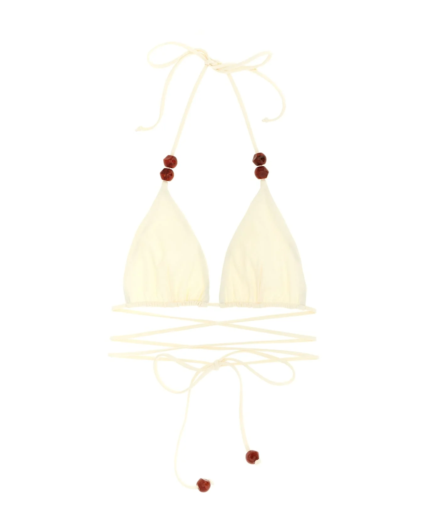 Triangle bikini top RE 26 with adjustable lacing and beaded details. Composition: 75% polyamide, 25% elastane Made in: Poland Color: White Size and fit: - True to size fit French sizing Model number: 628426CREAM