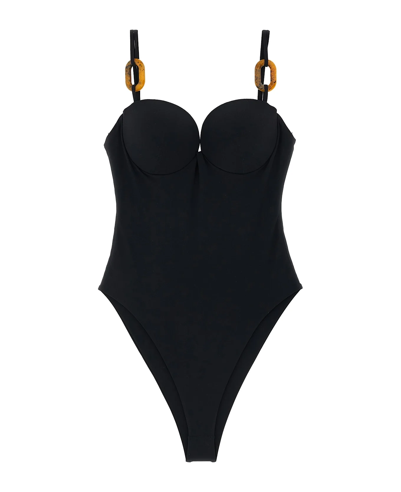 'RE26' one-piece swimsuit with padded cups, thin straps and jewelry detail. Composition: 75% polyamide, 25% elastane Made in: Poland Color: Black Size and fit: - True to size fit Model number: 610426BLACK