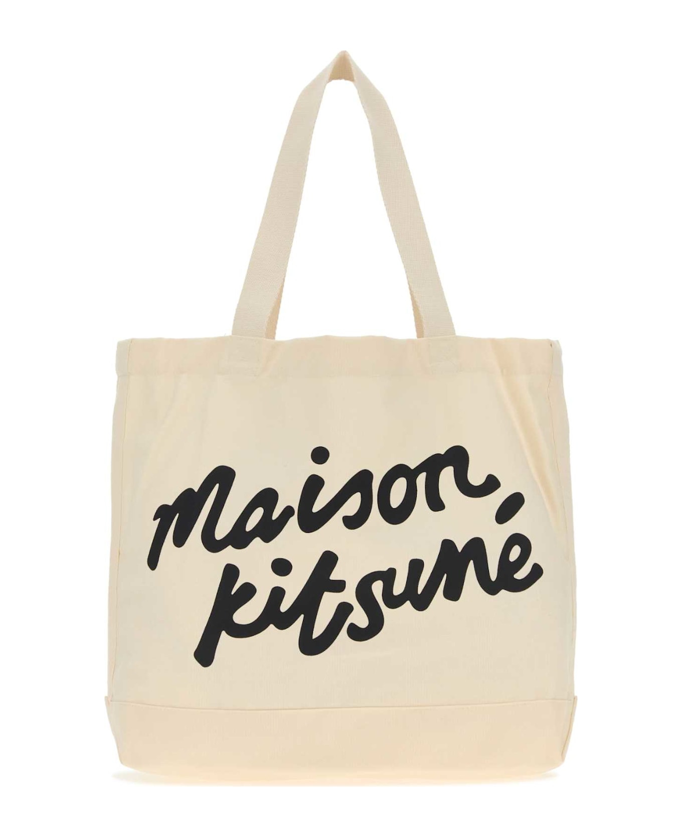 Cream Canvas Shopping Bag from Maison Kitsune Made in: China Color: POWDER Size and fit: - Width: 42 cm Height: 32 cm Depth: 12 cm Handle height: 20 cm Model number: PW05124WW9042P700