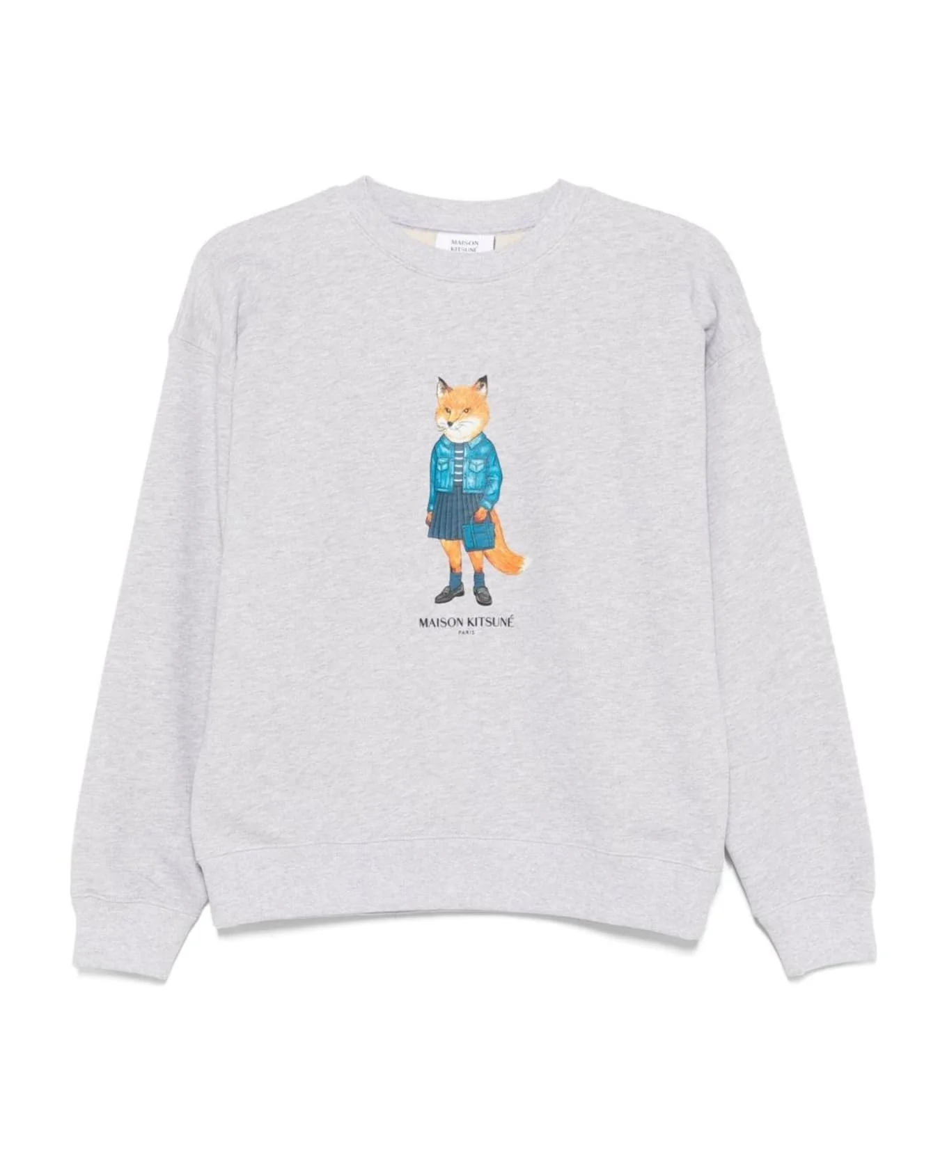 Dressed Fox sweatshirt by MAISON KITSUNE in grey cotton, featuring Dressed Fox print on the chest and crew neck. Composition: 100% Cotton Made in: Portugal Color: Light Grey Melange Model number: PW00316KM0341H120