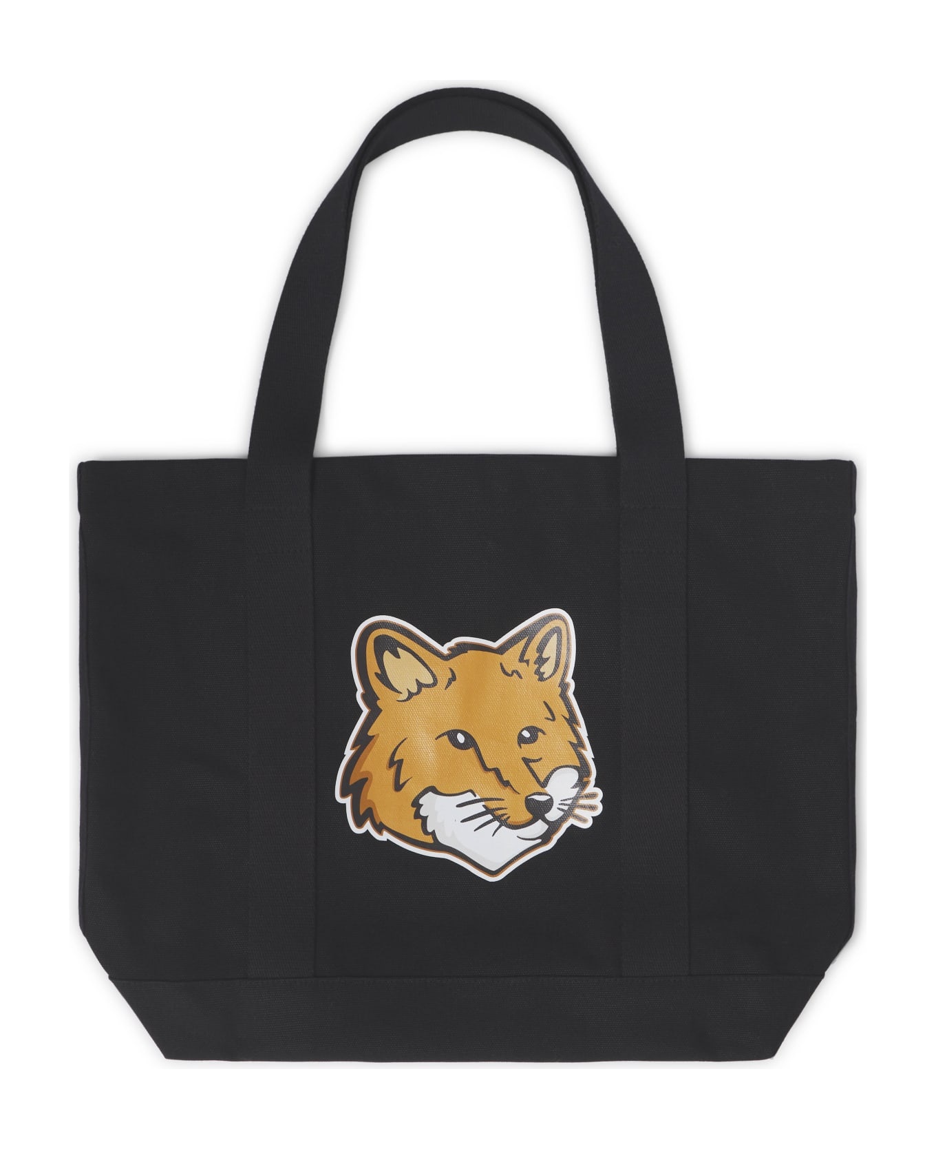 MAISON KITSUNE black canvas bag with printed Fox Head logo. Rear logo. Dimensions: 43 x 32. 5 cm. Composition: 100% Cotton Made in: China Color: Black Model number: LW05101WW0050P199