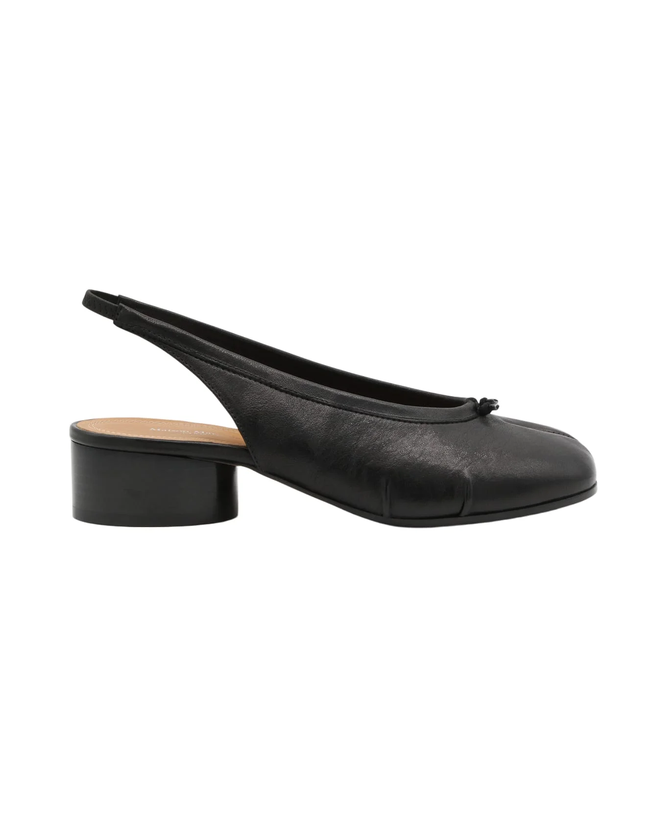Black leather sandals from Maison Margiela featuring Tabi toe, slip-on style, open back and square heel. Composition: _cover, 100% Le Sole, 100% Le Made in: Italy Color: Black Model number: S58WZ0141P3753T8013