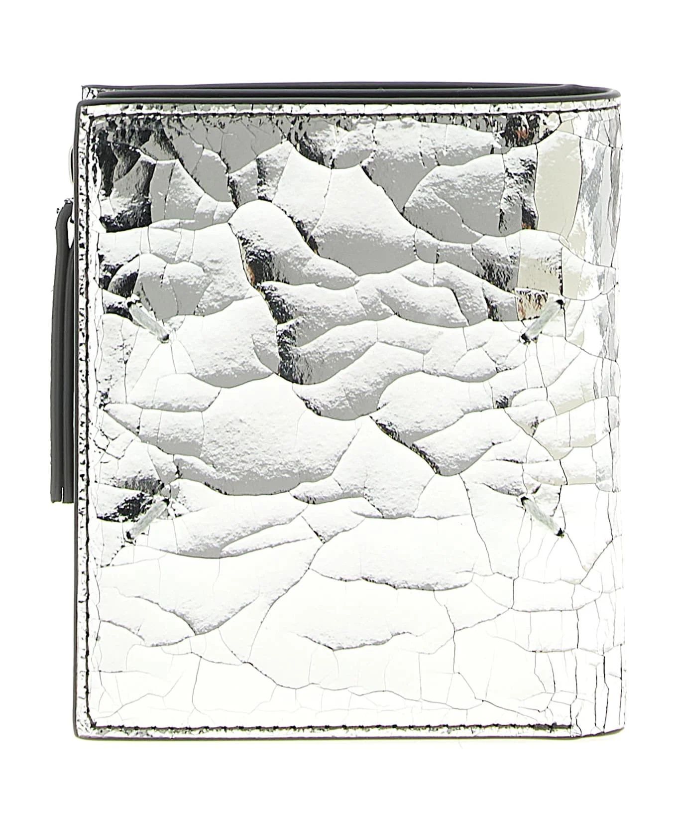 House's broken mirror leather wallet, double folding opening, front zip pocket and 'Four stitches' at the back. Composition: 100% calfskin leather Made in: Italy Color: SILVER Size and fit: - W 10.5 x H 9 x D 2 cm Model number: P5016SA1UI0025