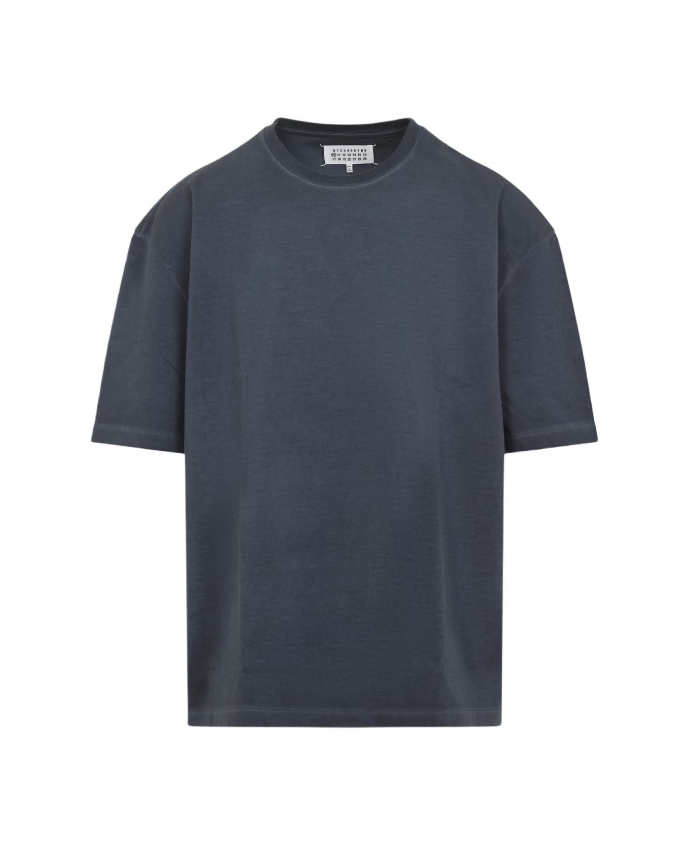 Maison Margiela Grey Cotton T-shirt. Crafted from washed anthracite grey cotton, round ribbed neckline, dropped shoulders, short sleeves, white four stitches signature on the back collar, slightly oversized fit, straight hem. Made in: Italy Color: Anthracite Model number: S50GC0646S23883855