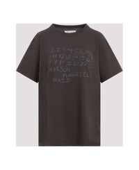 Maison Margiela Brown Cotton T-shirt. Crafted from dark brown cotton jersey, numeric logo print on the front, round ribbed neckline, dropped shoulders, short sleeves, straight hem, oversized fit. Made in: Italy Color: Brown Model number: S51GC0544S24575144