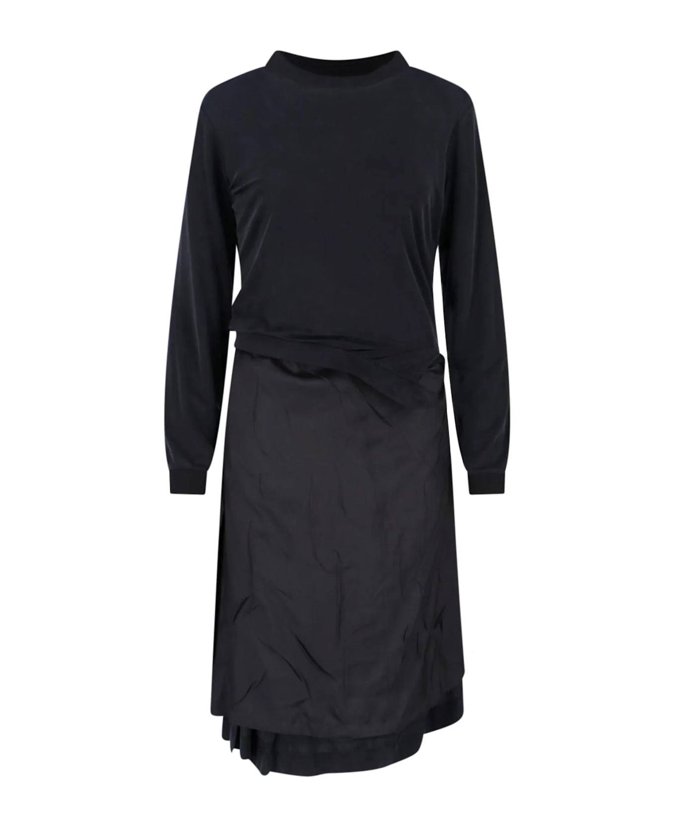 Maison Margiela 'Four Stitches' midi dress in black fabric with round neckline, long sleeves, side zip closure and back button, ribbed cuffs, 'Four stitches' logo embroidery at the back, asymmetrical hem. Composition: 90% Cupro, 10% Elastane Made in: Italy Color: Black Size and fit: - Vestibilita regolare Model number: S51DD0059MTJ041900