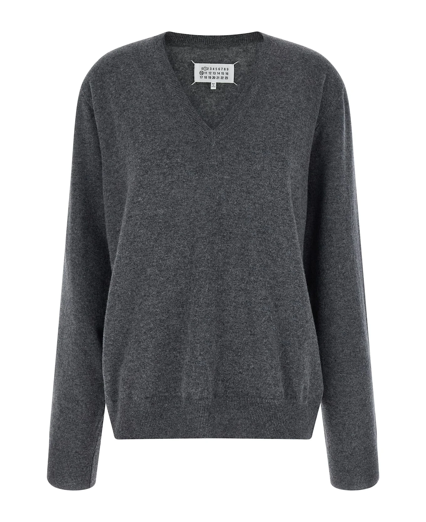 Virgin wool sweater with chain knitted fabric construction with thin thread, V-neck, long sleeves with cuffs and dropped shoulder, back 'Four Stitches'. The peculiarity of this product is given by the fact that it has been made through craftsmanship that make it a unique piece. Slight imperfections and slight differences between one garment and another are, therefore, to be considered normal and a guarantee of craftsmanship of the product. Composition: 100% virgin wool Made in: Italy Color: Gray Size and fit: - Comfort fit Model number: S51HN0006M13225859M