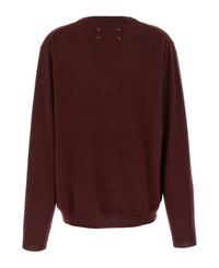 Virgin wool sweater with chain knitted fabric construction with thin thread, V-neck, long sleeves with cuffs and dropped shoulder, back 'Four Stitches'. The peculiarity of this product is given by the fact that it has been made through craftsmanship that make it a unique piece. Slight imperfections and slight differences between one garment and another are, therefore, to be considered normal and a guarantee of craftsmanship of the product. Composition: 100% virgin wool Made in: Italy Color: Bordeaux Size and fit: - oversized fit Model number: S51HN0006M13225211