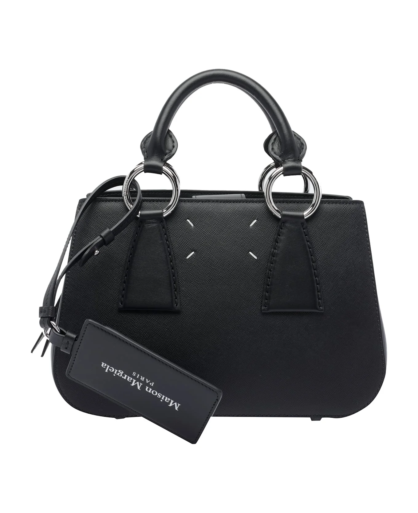 100% Calf Leather Made in: Italy Color: BLACK Size and fit: - Width: 27 cm Height: 19 cm Depth: 10 cm Handle height: 9 cm Min shoulder strap length: 20 cm Max shoulder strap length: 50 cm Model number: SB1WD0048P7275T8013
