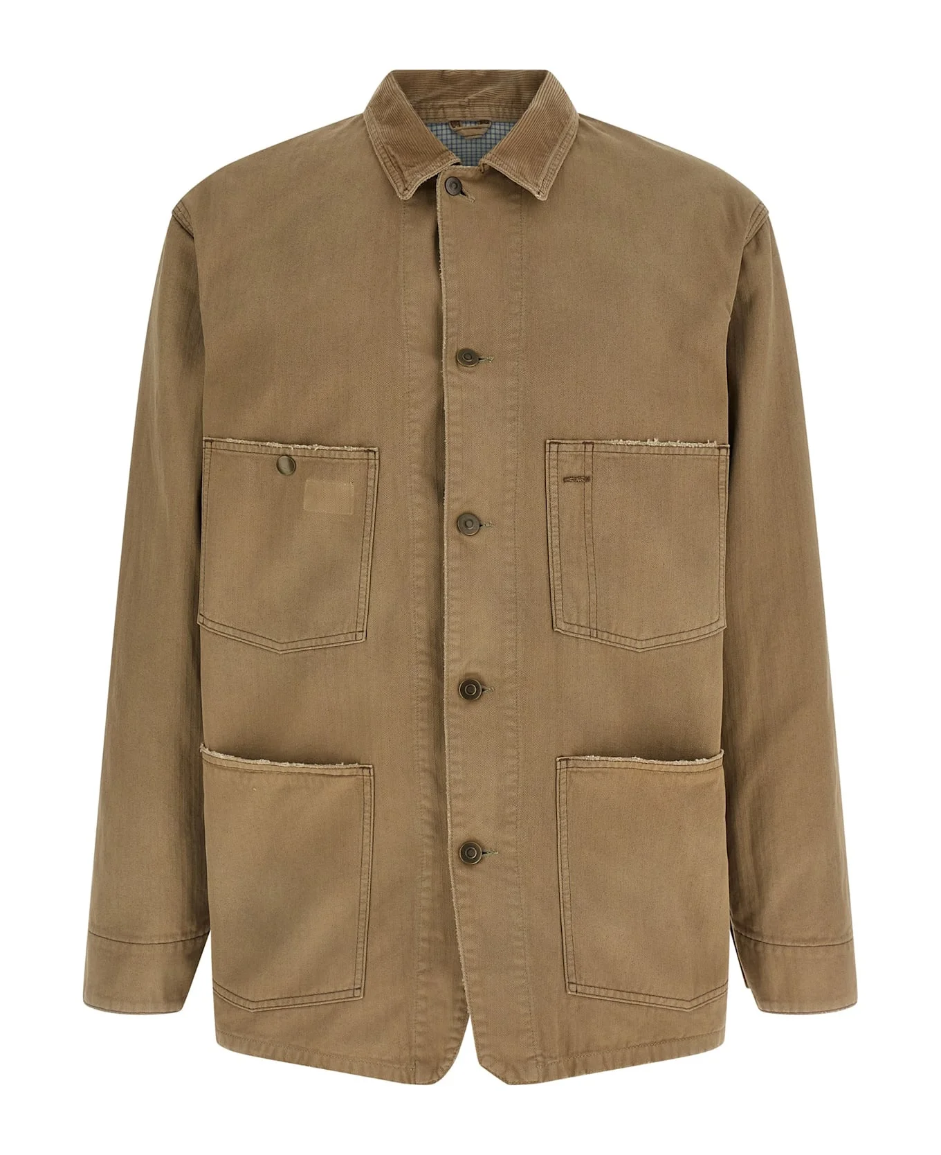 Used-effect herringbone cotton canvas jacket, check cotton lining, corduroy collar, front button closure, pockets, long sleeves with adjustable cuffs. Composition: 100% cotton Made in: Italy Color: NEUTRALS Size and fit: - true to size fit Model number: M30024S50AM0646