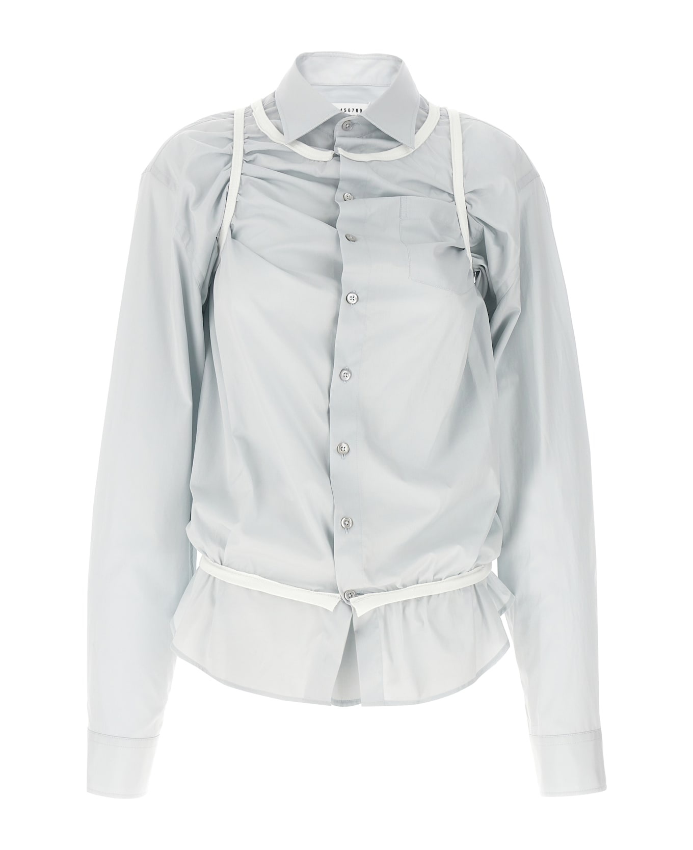 Cotton shirt with layered top, button closure, long cuffed sleeves, chest pocket. Composition: 100% cotton Made in: Italy Color: Light Blue Size and fit: - true to size fit Model number: S51DT0019M35397500