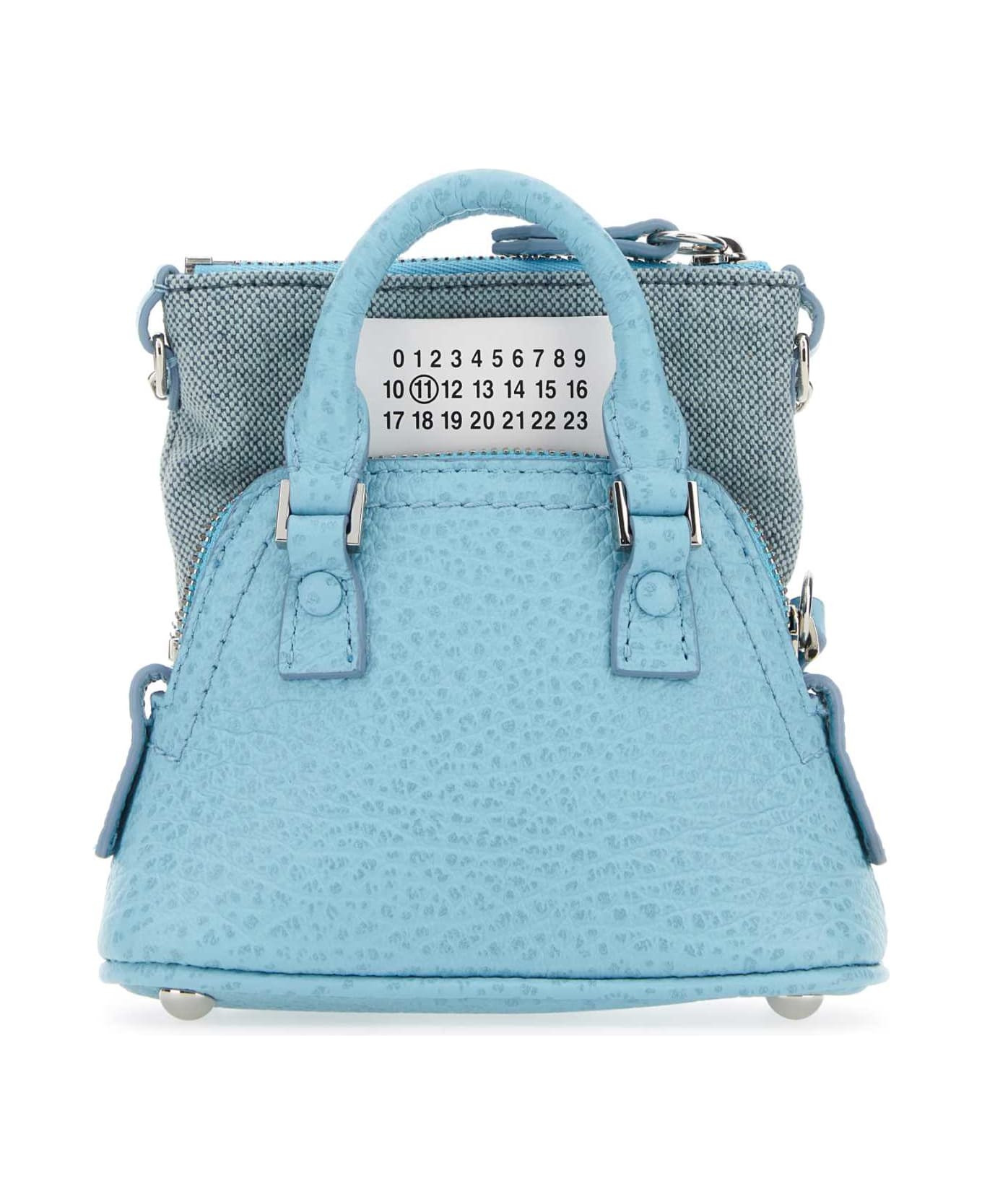 Light Blue Leather And Fabric 5ac Classique Baby Handbag from Maison Margiela Made in: Italy Color: AQUA Size and fit: - Width: 13 cm Height: 13 cm Depth: 6 cm Handle height: 4 cm Shoulder strap length: 44 cm Model number: SB3WG0025P4455T6197