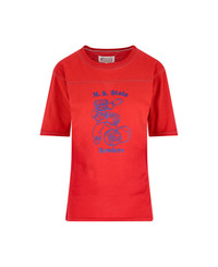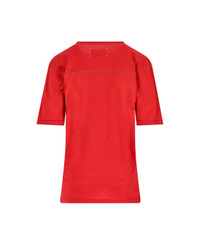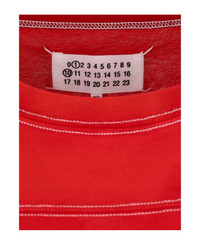 Red cotton maison margiela logo T-shirt with short sleeves, contrast print on the front, Four Stitches embroidery detail on the back, ribbed trim, and straight hem. Composition: 100% Cotton Made in: Italy Color: Red Size and fit: - Vestibilita regolare Model number: S51GC0540S24575314