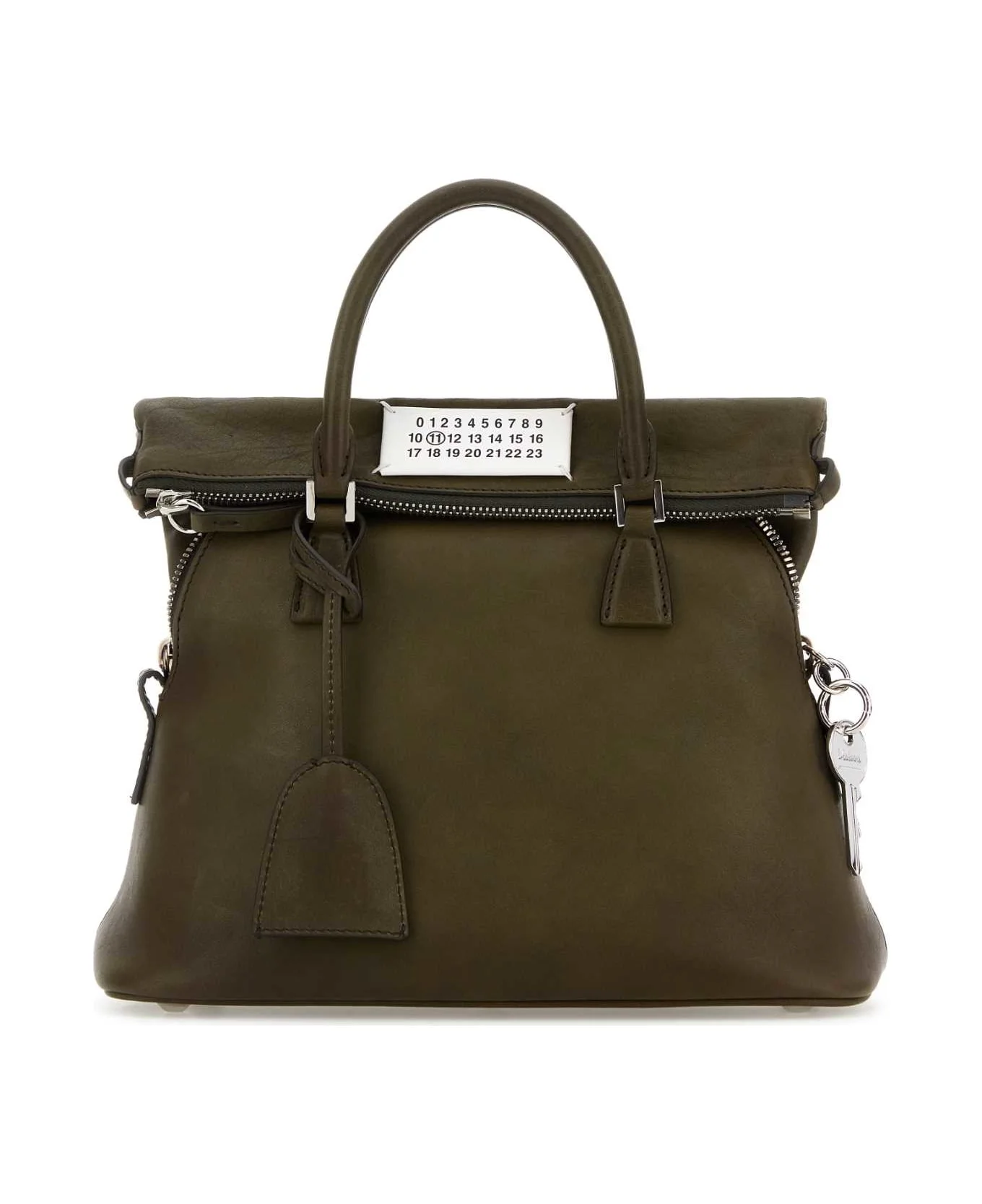 Olive Green Leather Mini 5ac Handbag from Maison Margiela Made in: Italy Color: KHAKI Size and fit: - Width: 26 cm Height: 18 cm Depth: 16 cm Handle height: 10 cm Min shoulder strap length: 29 cm Max shoulder strap length: 60 cm Model number: SB1WG0075P8565T7225