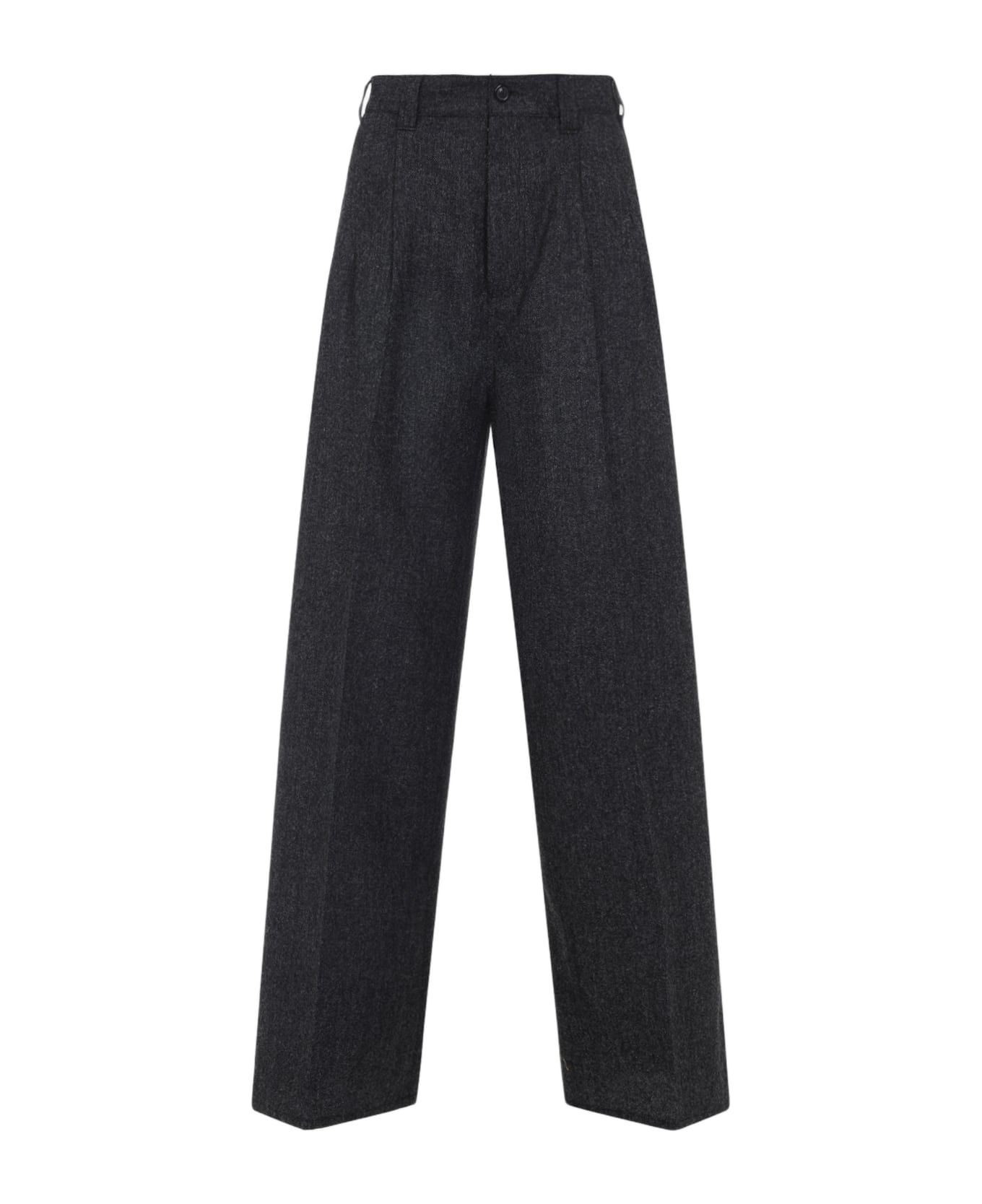 Maison Margiela Dark Grey Melange Cotton Pants. Pure dark grey melange cotton pants, front concealing zipped fastening, front buttoned fastening, belt loops, side pockets, back elastic waist, back signature contrasting white stitching, back slit pockets, wide leg, straight hem. Made in: Italy Color: M Dark Grey Melange Model number: S29KA0394M35569855M