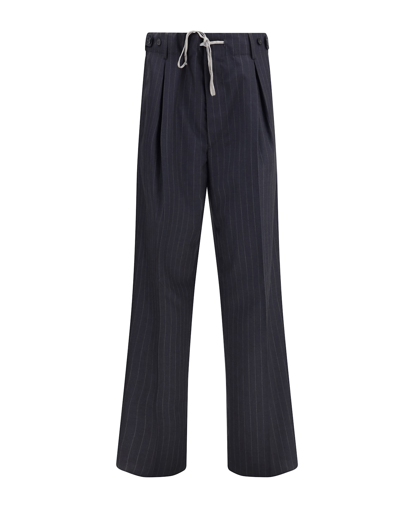 The pinstripe trousers by maison margiela embody a relaxed yet contemporary elegance. the pinstripe pattern enhances the straight-leg silhouette, while the front pleats give the design structure. the drawstring fastening at the waist adds a functional and modern touch, softening the garment s classic character. a versatile piece that merges sartorial style with everyday comfort. Composition: 100% % Wool Made in: Italy Model number: S67KA0080M35581860F