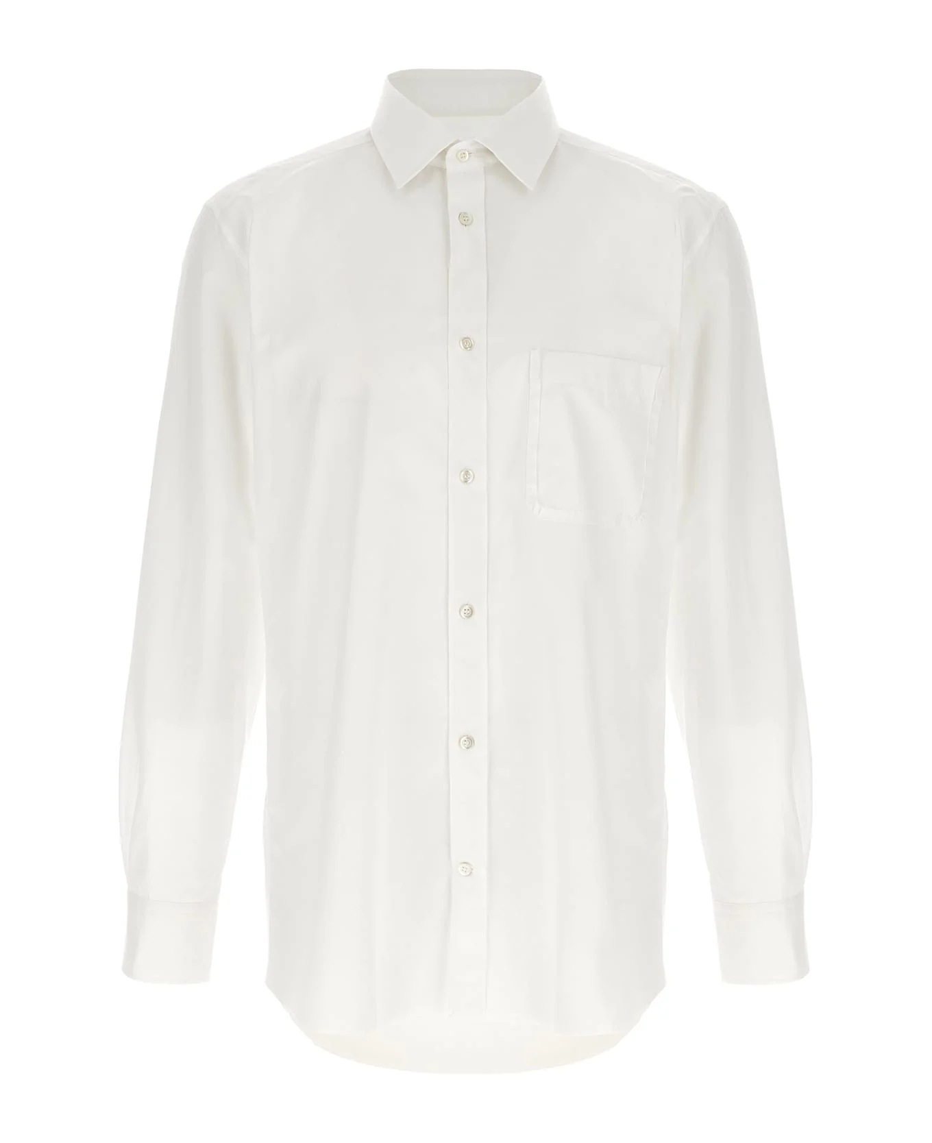 Cotton poplin shirt, chest pocket, front button closure, long cuffed sleeves, and raw cut hem. Composition: 100% cotton Made in: Italy Color: White Size and fit: - true to size fit - COLLAR size Model number: S50DT0073S43001102