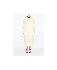 light beige cotton coated finish front press-stud fastening drawstring hood drop shoulder extra-long sleeves elasticated cuffs two front patch pockets storm flap mid-calf length straight hem Made in: Italy Color: NEUTRALS Model number: M35271S51AH0205
