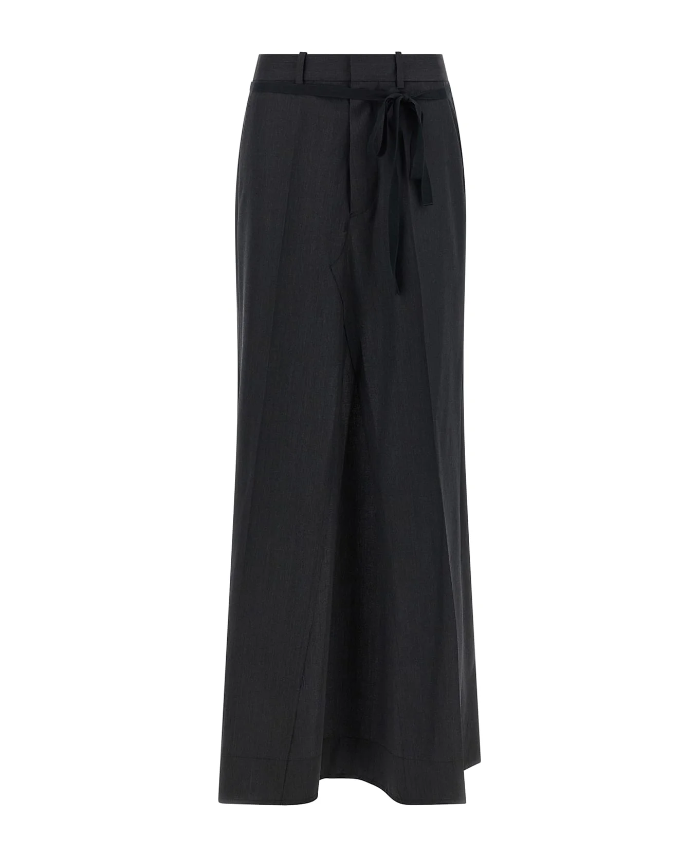 Long skirt in cool wool, raw cut hem with frayed edges, flared silhouette, wallet model with contrast grosgrain lace to tie as desired and open back, pockets, front zip and hook closure, front pin tucks, back 'Four Stitches'. Composition: 100% virgin wool Made in: Italy Color: Black Size and fit: - True to size fit Model number: S29MI0009M35910855M