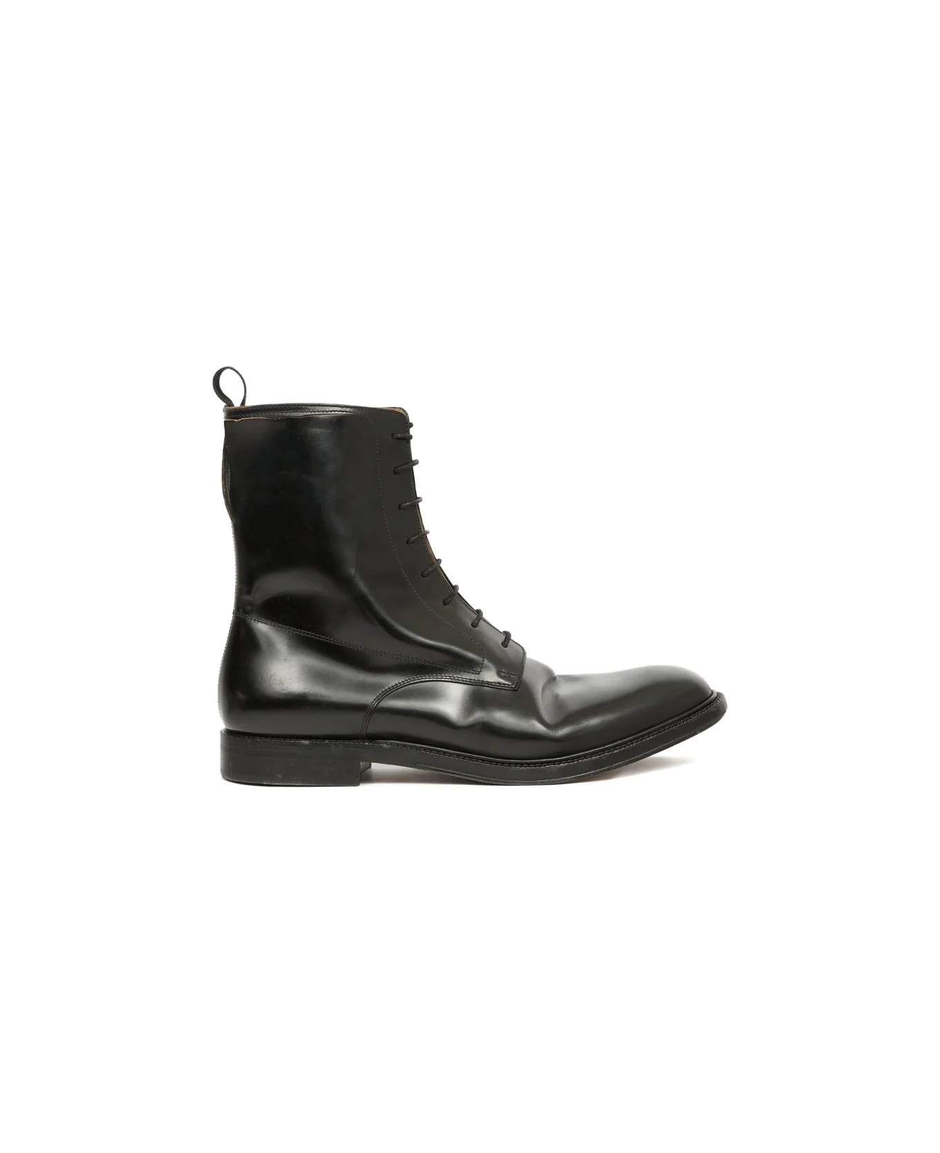 black front lace-up fastening round toe pull-tab at the heel flat sole Made in: Italy Color: BLACK Model number: P7422S57WU0291