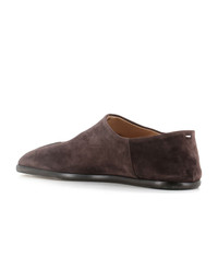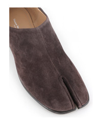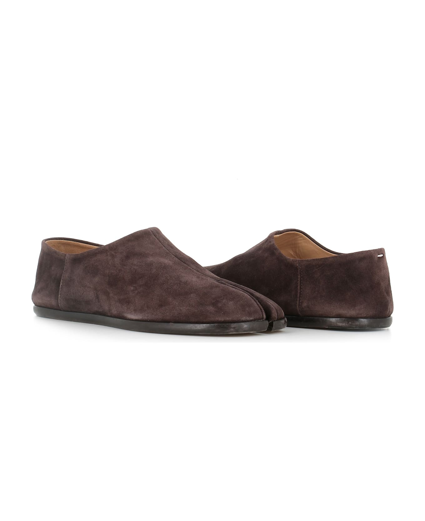 Dark brown soft suede women's ballerina by Maison Margiela, featuring by Tabi cut-out on the toe. Leather sole. Leather-lined interior. Heel: 1 cm. Composition: Suede Made in: Italy Color: Brown Size and fit: - Fits true to size. Model number: S57WR0051T2154