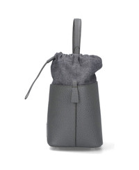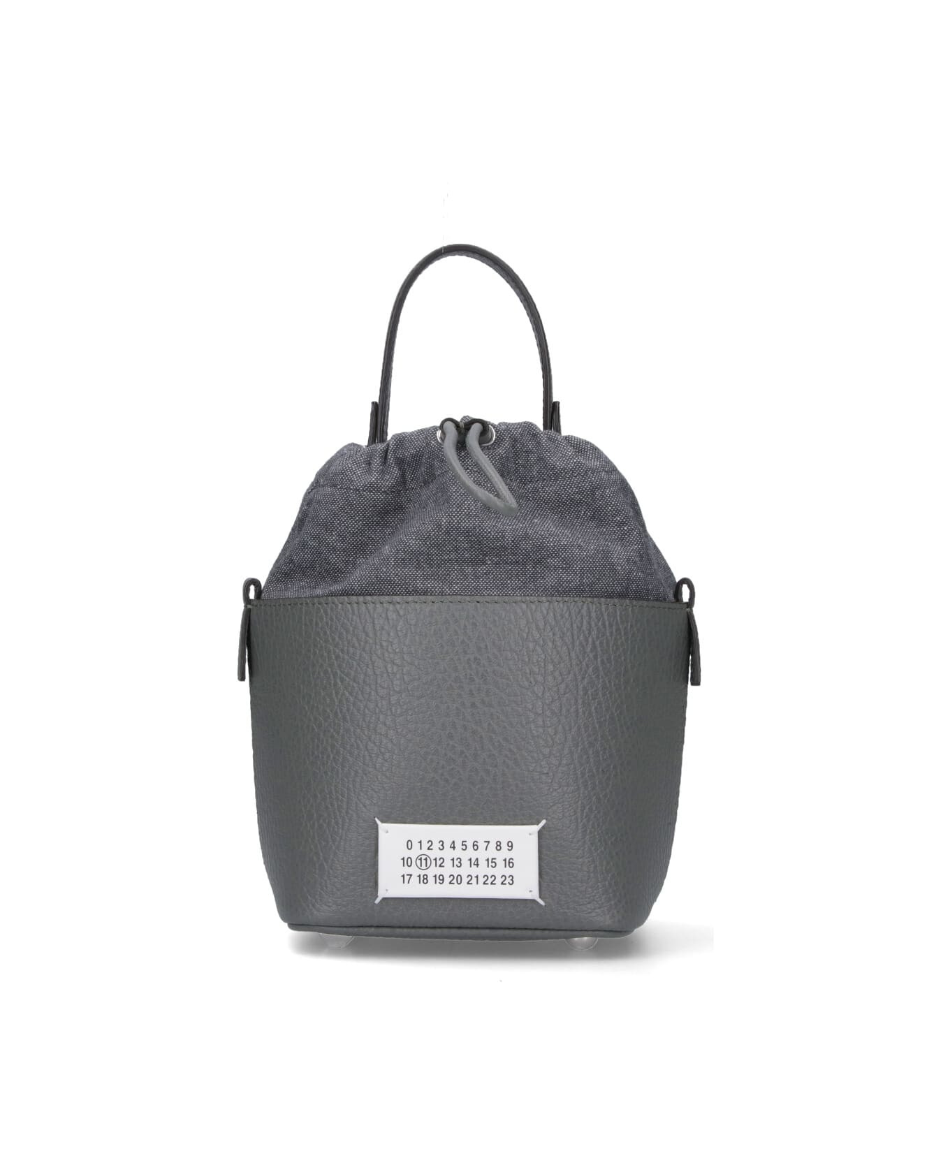 Maison Margiela '5AC' Small bucket bag in grey hammered leather, top handle, removable chain shoulder strap, drawstring closure, white logo label on the front, single inner compartment. Composition: 100% Calf Leather Made in: Italy Color: Gray Size and fit: - A 14 X L 12 X P 15 cm Model number: S61WG0035P4348T8127