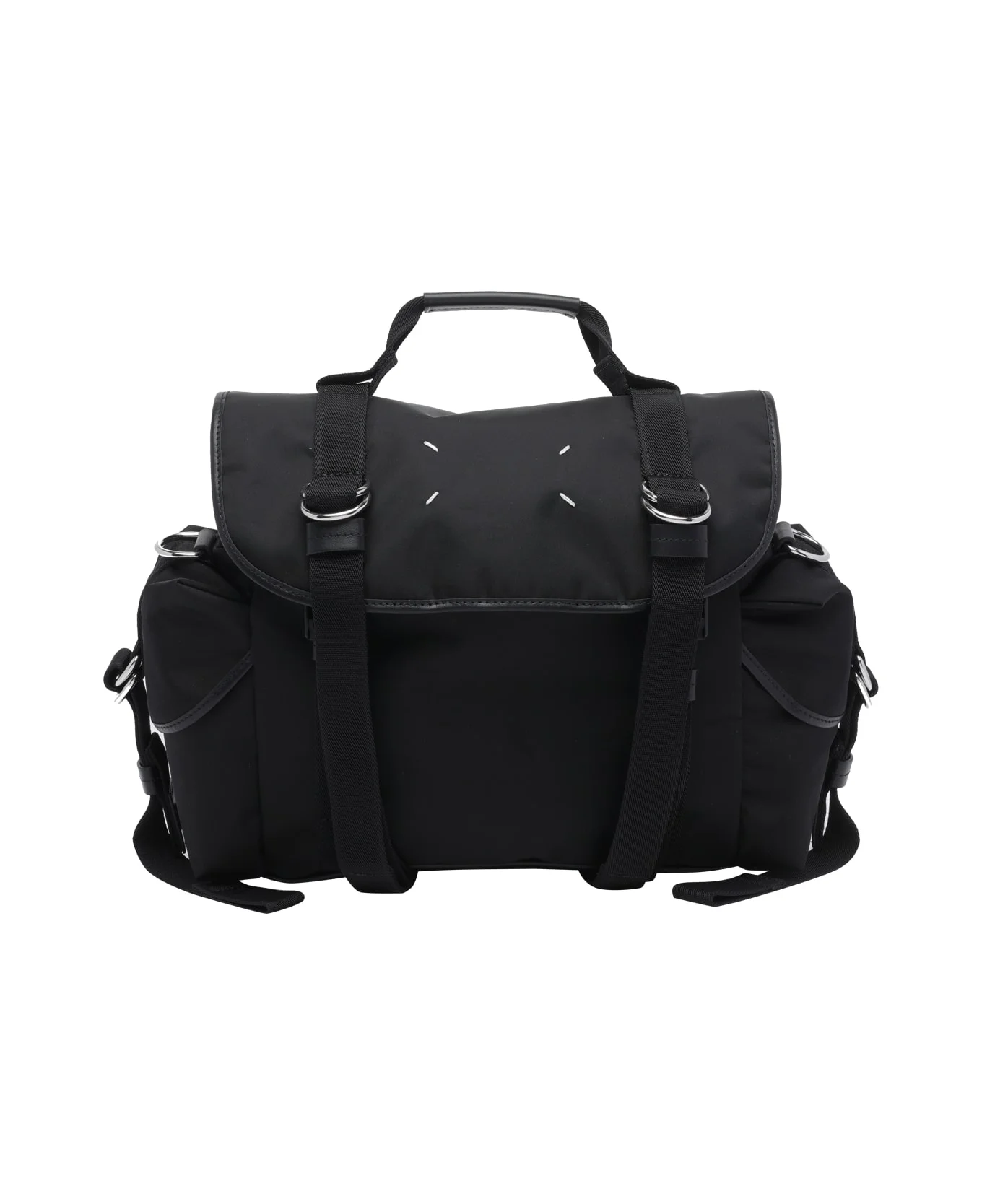 Maison Margiela black Small High Tech messenger bag, buckle and coulisse closure, inner open pocket, 2 external pockets, adaptable and removable strap, frontal logo Composition: 100% Polyamide Made in: Italy Color: Black Size and fit: - 25x33x11 cm Model number: SB1WG0078P6763T8013