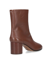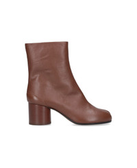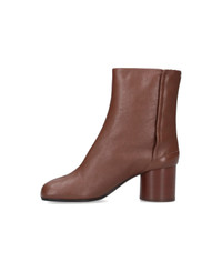 Maison Margiela 'Tabi' ankle boots in brown nappa leather with round toe with Tabi cut, side hook closure, contrasting stitching at the back, cylindrical heel, leather sole. Composition: 100% Calf Leather Made in: Italy Color: Warm Coffee Size and fit: - Altezza tacco 6 cm Model number: S58WU0246P3753T2621Warm
