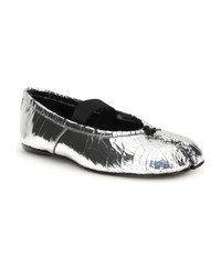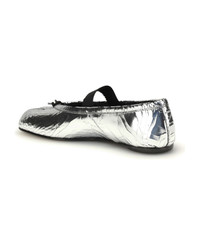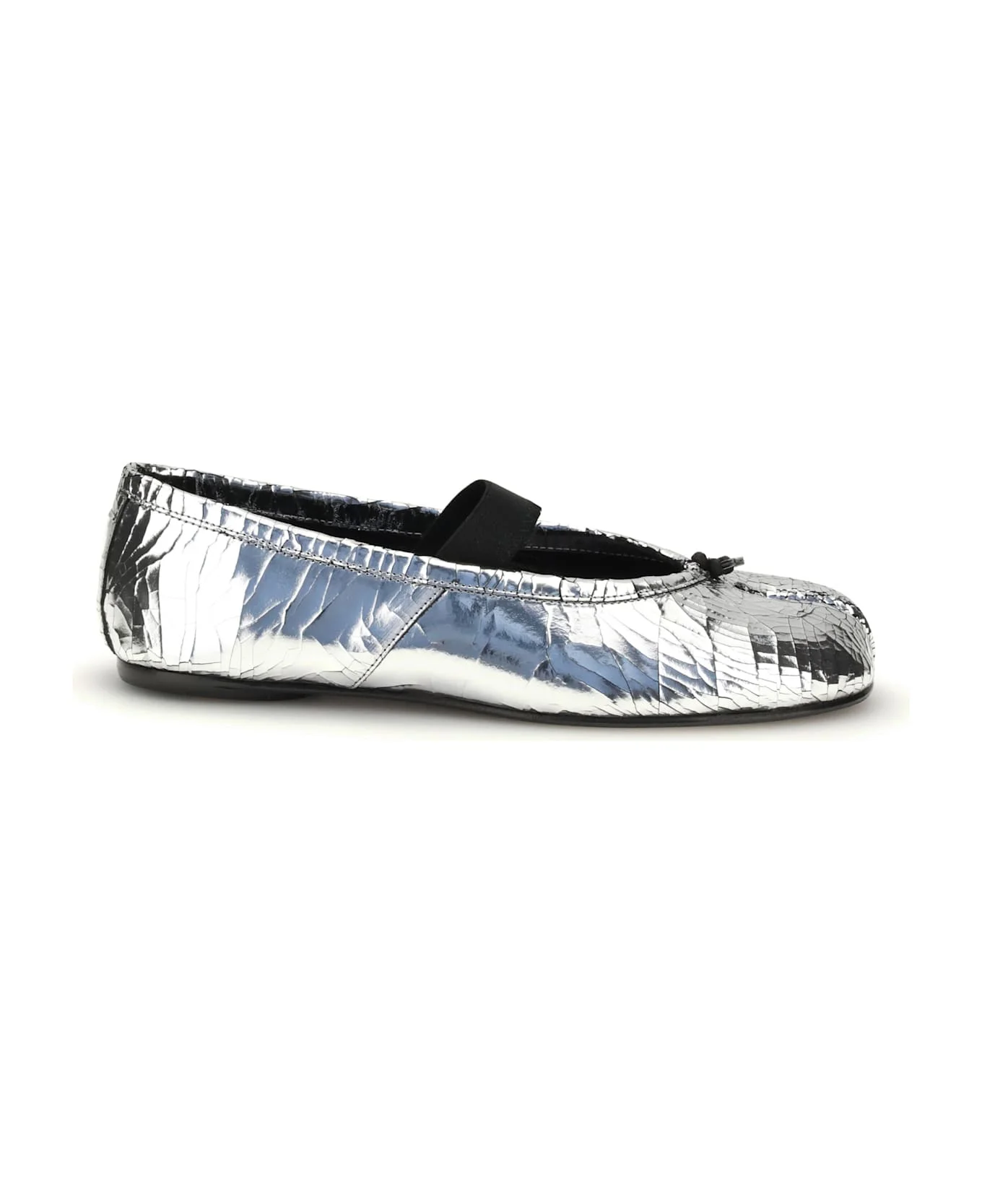 Tabi split-toe metallic cracked-leather ballet flats Silver