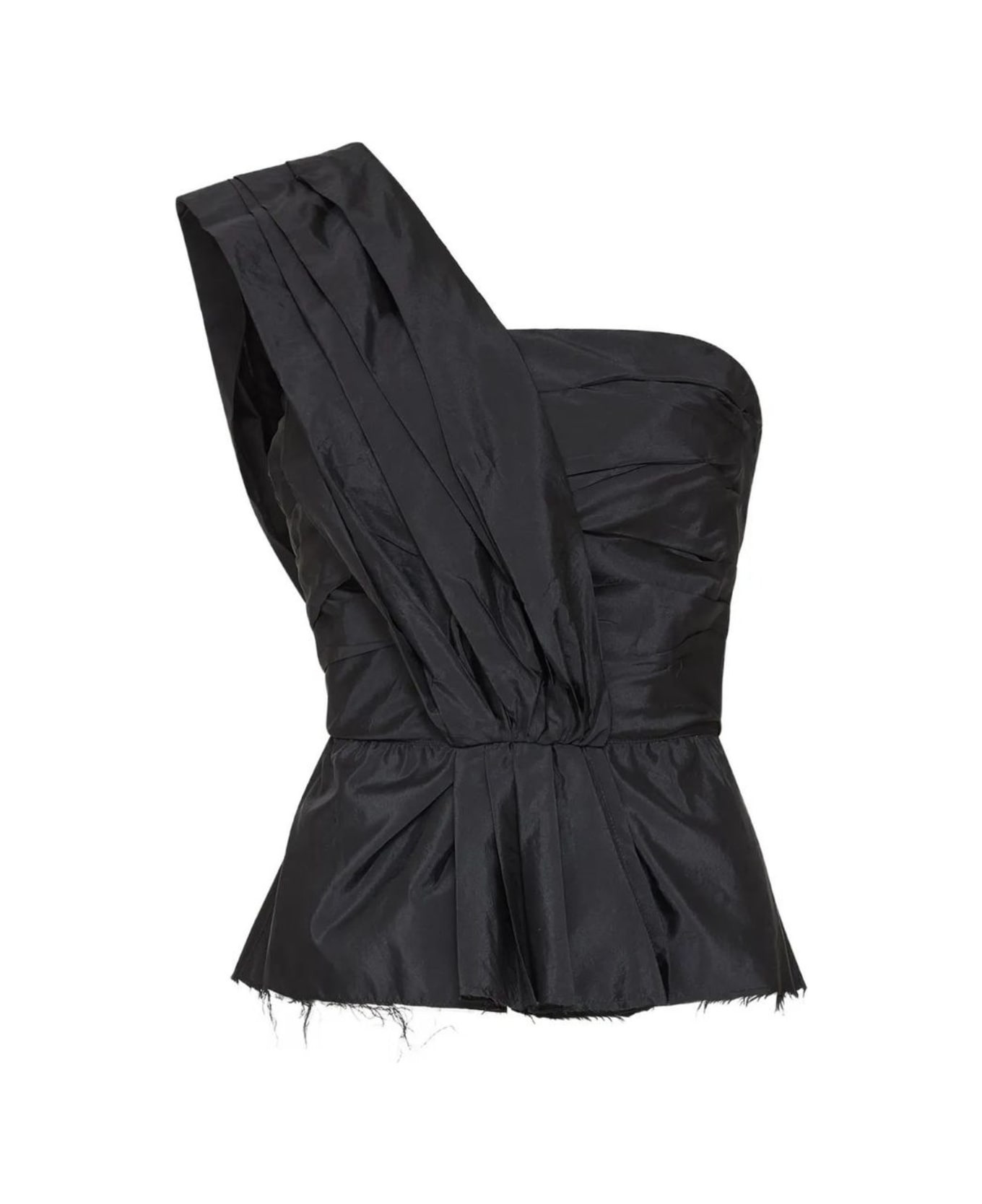 Maison Margiela top in light taffeta, draped on the shoulders and tight at the waist, features a deconstructed shape, raw cut edges. GTIN code: S51NC0629M35350 Made in: Italy Color: Black Model number: S51NC0629M35350900