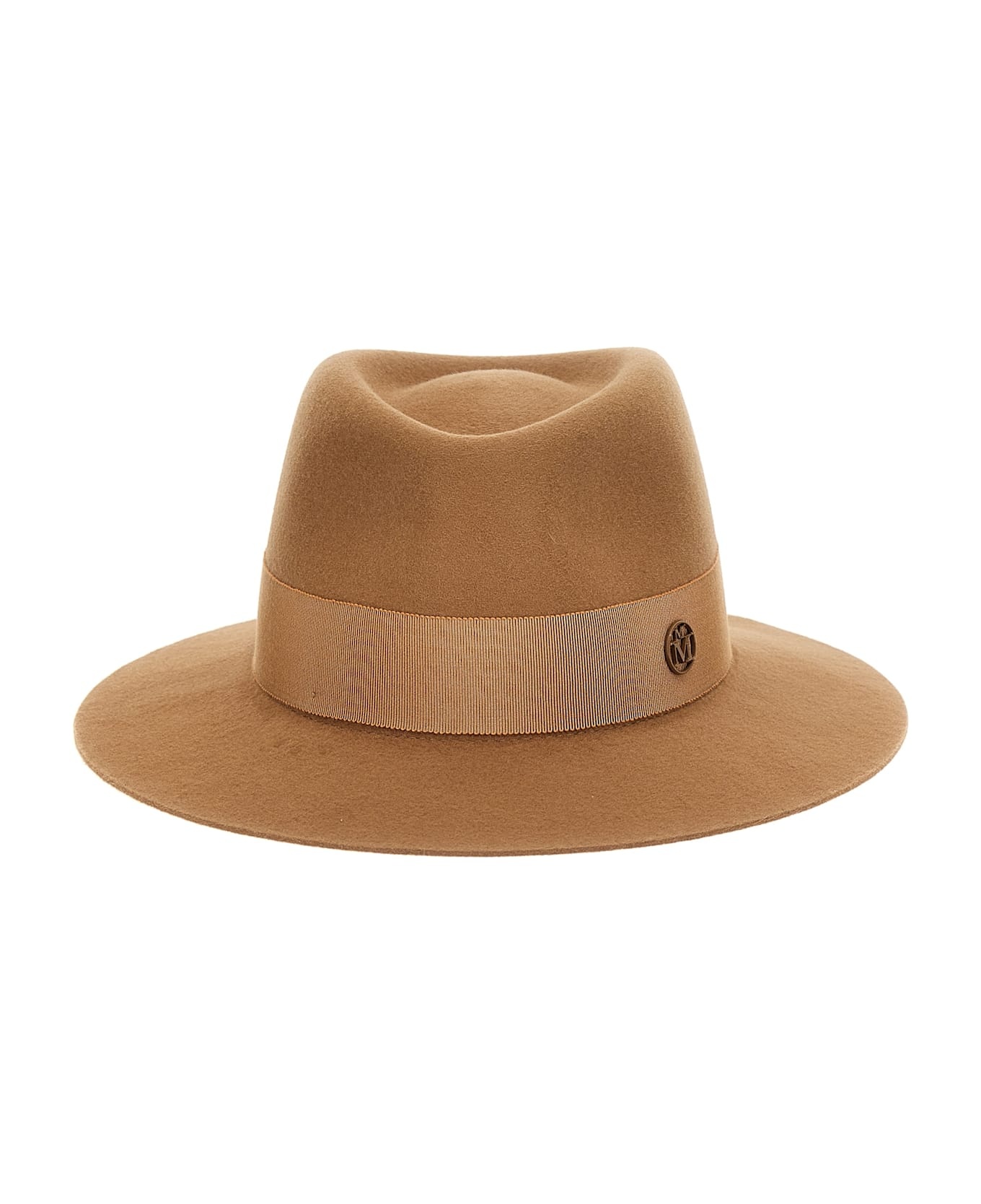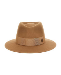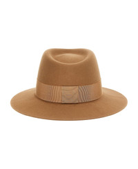 Andre' wool felt hat, fedora style with grosgrain ribbon and tone-on-tone metal logo. Composition: 100% wool felt Made in: Italy Color: Brown Size and fit: - true to size fit Model number: 1003037006CAMEL