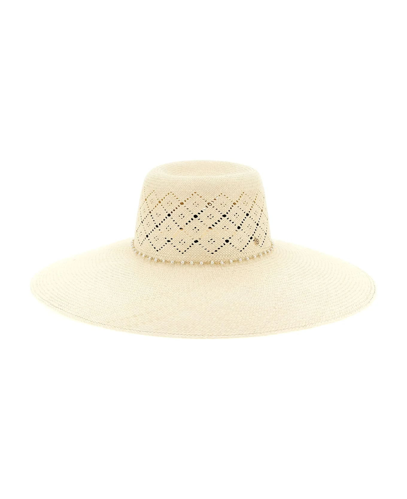 'Blanche' hat in natural Panama straw, wide-brimmed caplin style with openwork embroidery and pearl chain. Handcrafted product, any imperfections are to be considered characteristics of uniqueness. Composition: 100% brisa Made in: Ecuador Color: Beige Size and fit: - true to size fit S: 56 cm M: 58 cm W: 60 cm Model number: 1004087001NATURAL