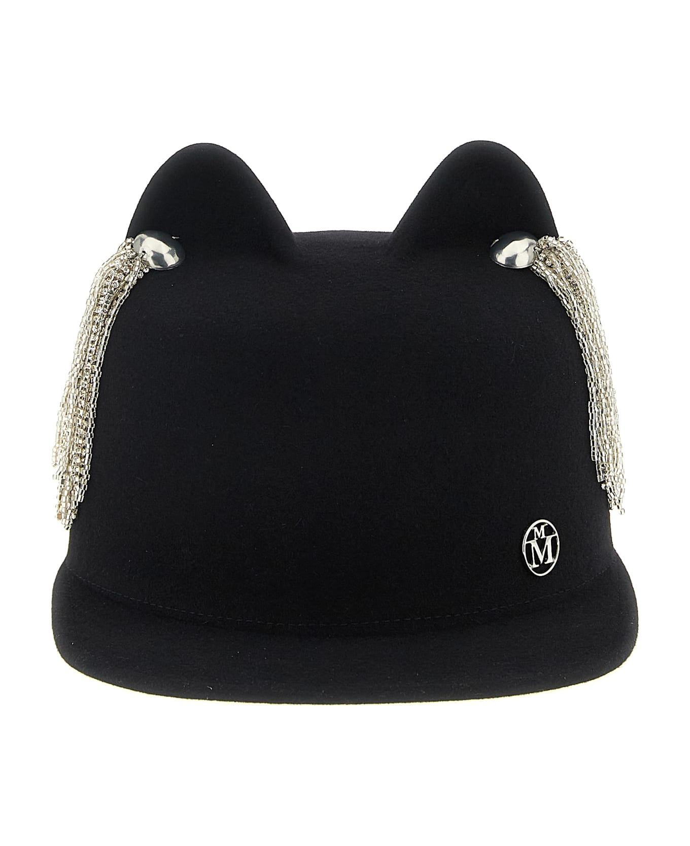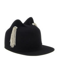 'Jamie' wool felt hat with shaped ears and jewelry application detail with crystal pendants, metal logo. Composition: 100% wool felt Made in: France Color: Black Size and fit: - True to size fit Model number: 1027086001BLACK