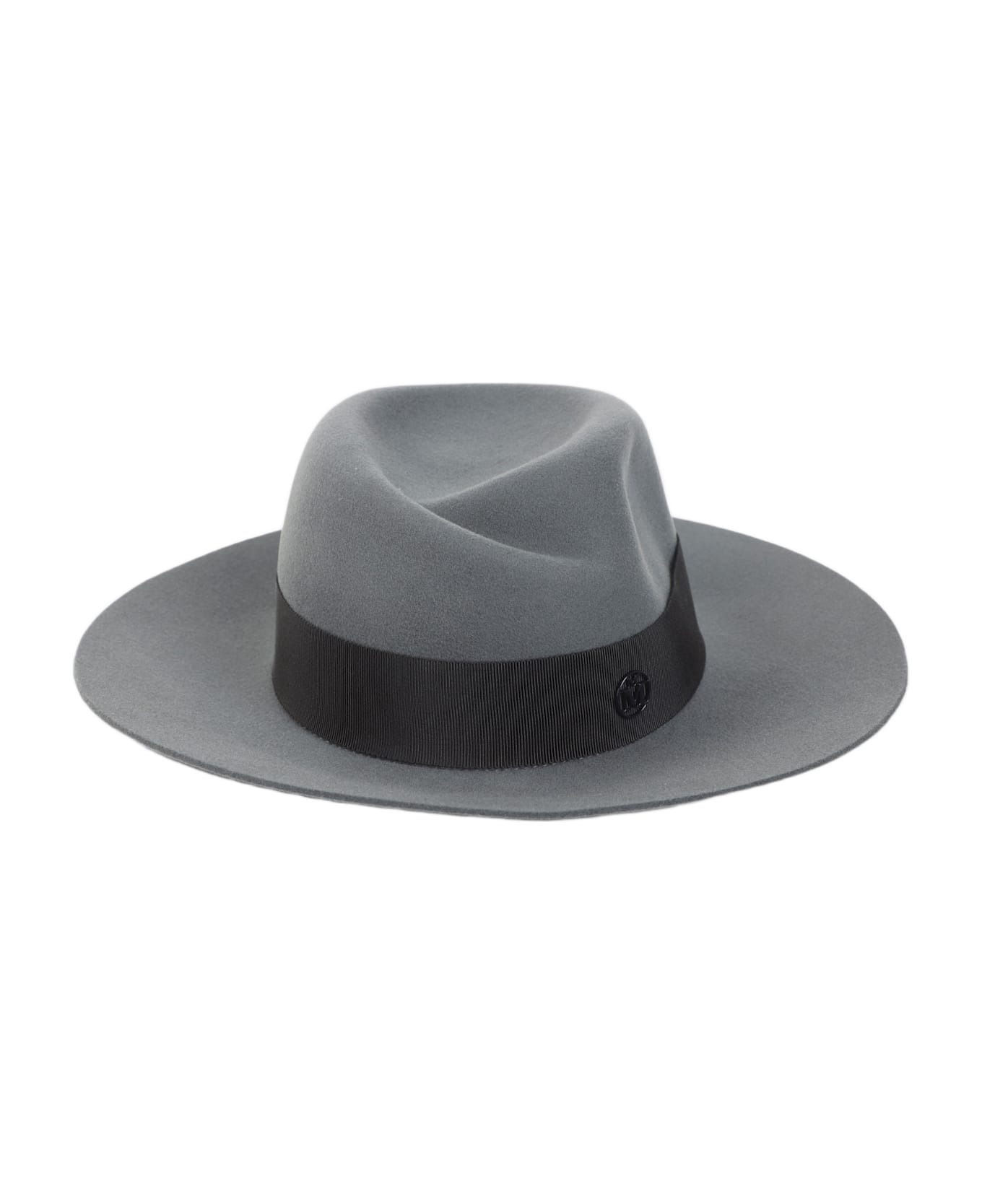 Maison Michel Virginie Grey Wool Hat. Crafted from grey felted wool, fedora hat design, grosgrain ribbon with logo plaque detail. Made in: France Color: Graphit Grey Model number: 1001283001GRAPHIT