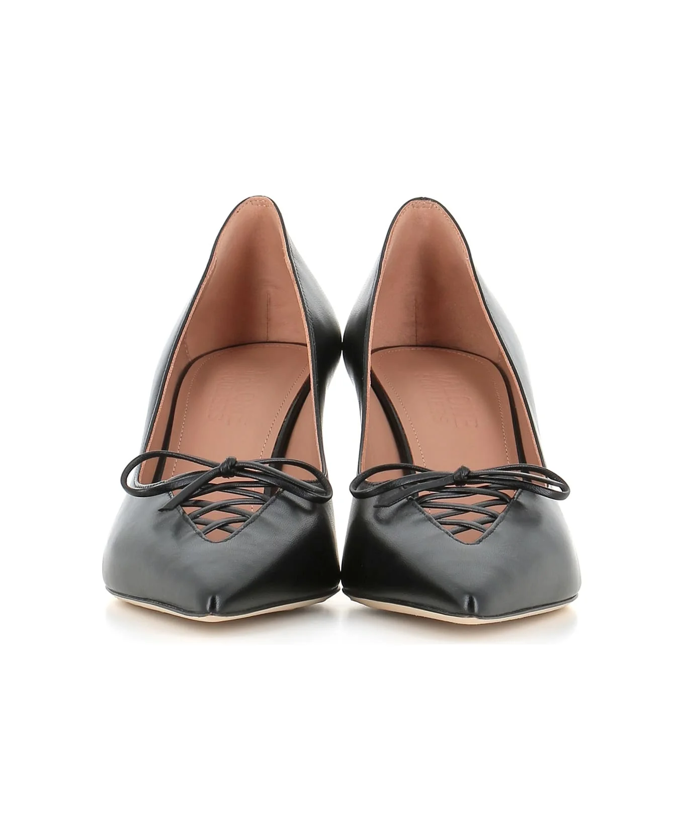 Black leather women's Decollete by Malone Souliers, featuring a tapered toe with decorative laces. Lined interior. Leather sole. Heel: 7 cm Composition: Leather Made in: Italy Color: Black Size and fit: - Fits true to size. Model number: HEDY702