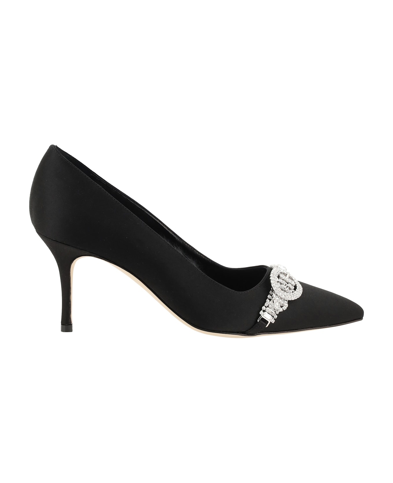 Black Satin Jewel Embellished Pumps