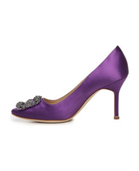 -Made of satin -Almond toe -Square crystal buckle -Stiletto heel -Heel height: 90 mm -Made in Italy -Color: Purple Made in: Italy Color: PURPLE Model number: 9XX06635061