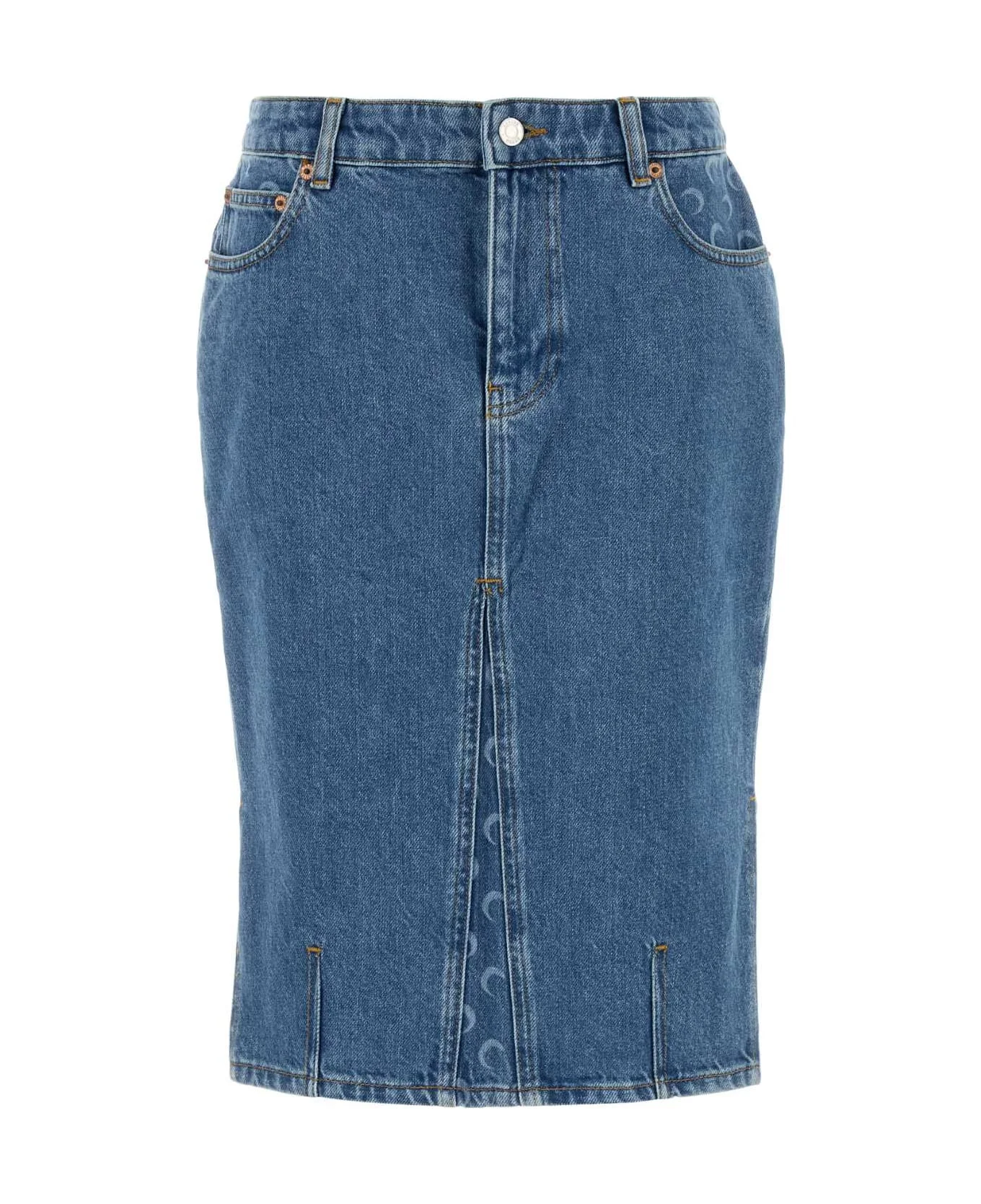 MOON LASER BLUE WASH DENIM KNEE LENGTH SKIRT